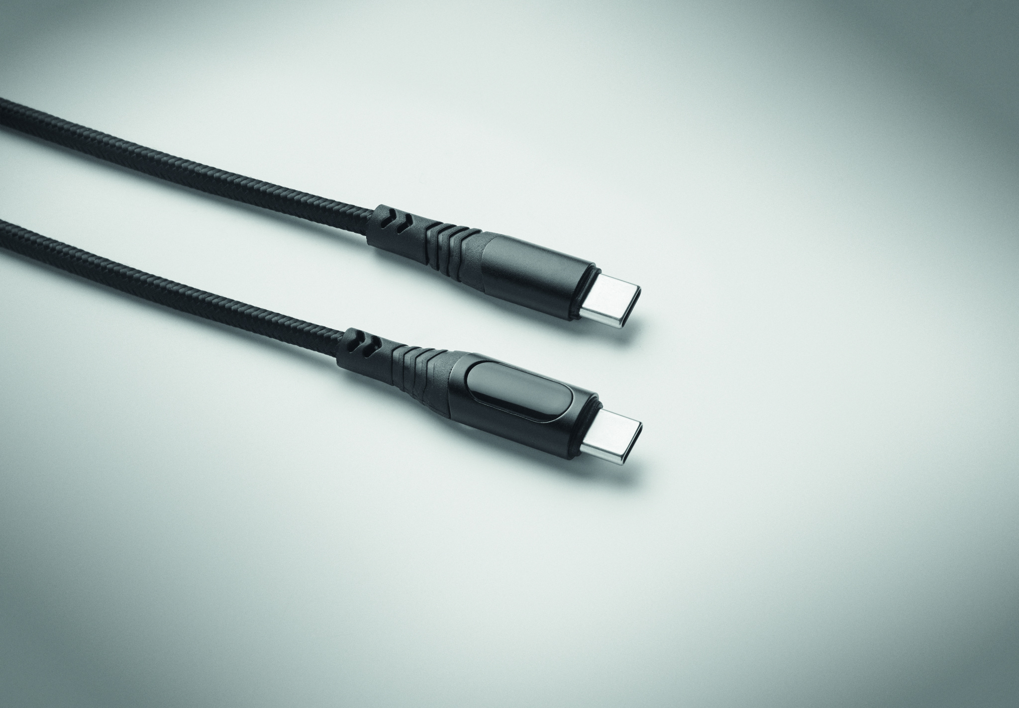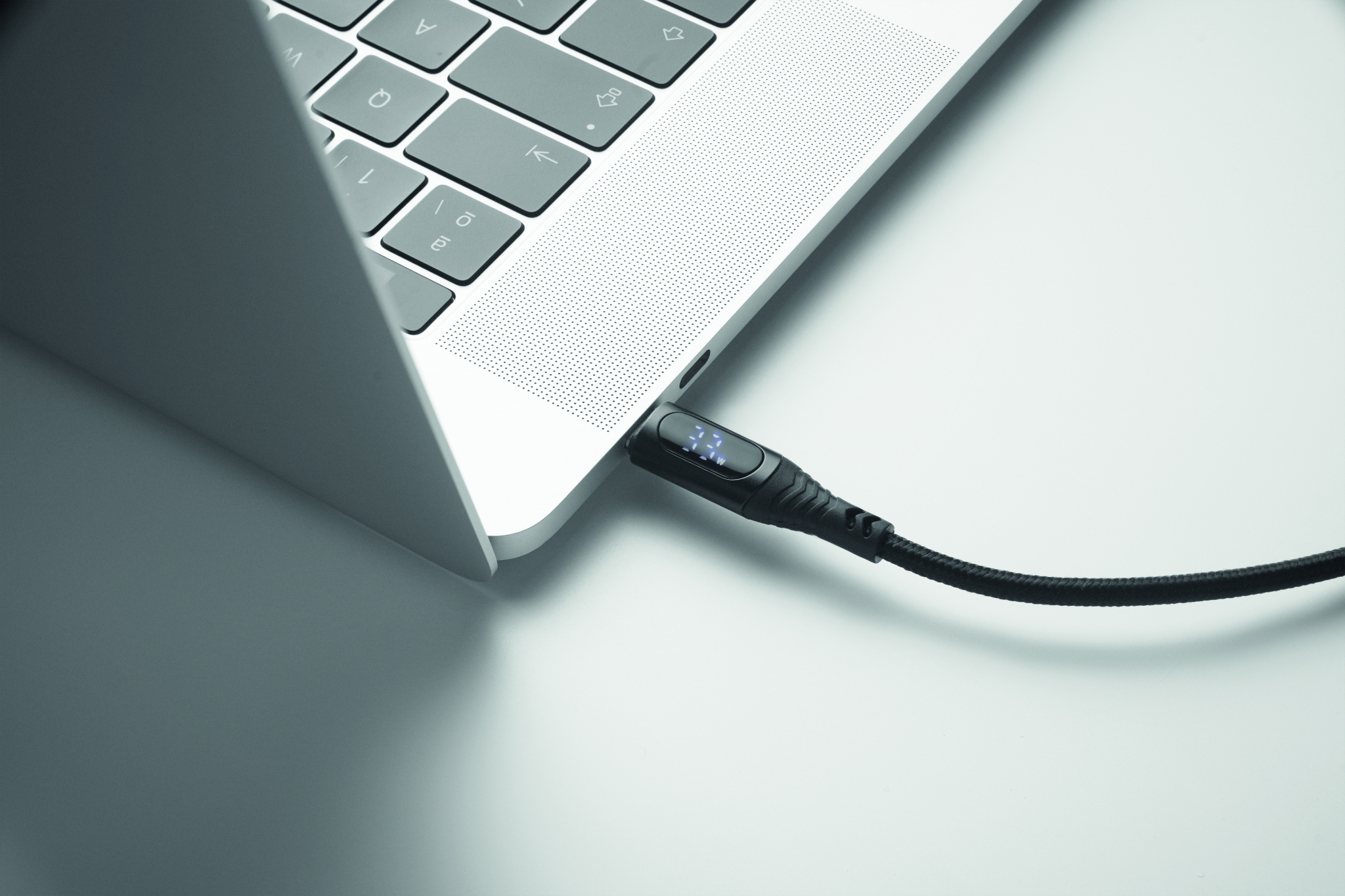 Datenübertragungs- und Ladekabel mit bis zu 100W. Typ-C auf Typ-C. LED-Bildschirm zur Anzeige der Ladeleistung. Länge 1m.