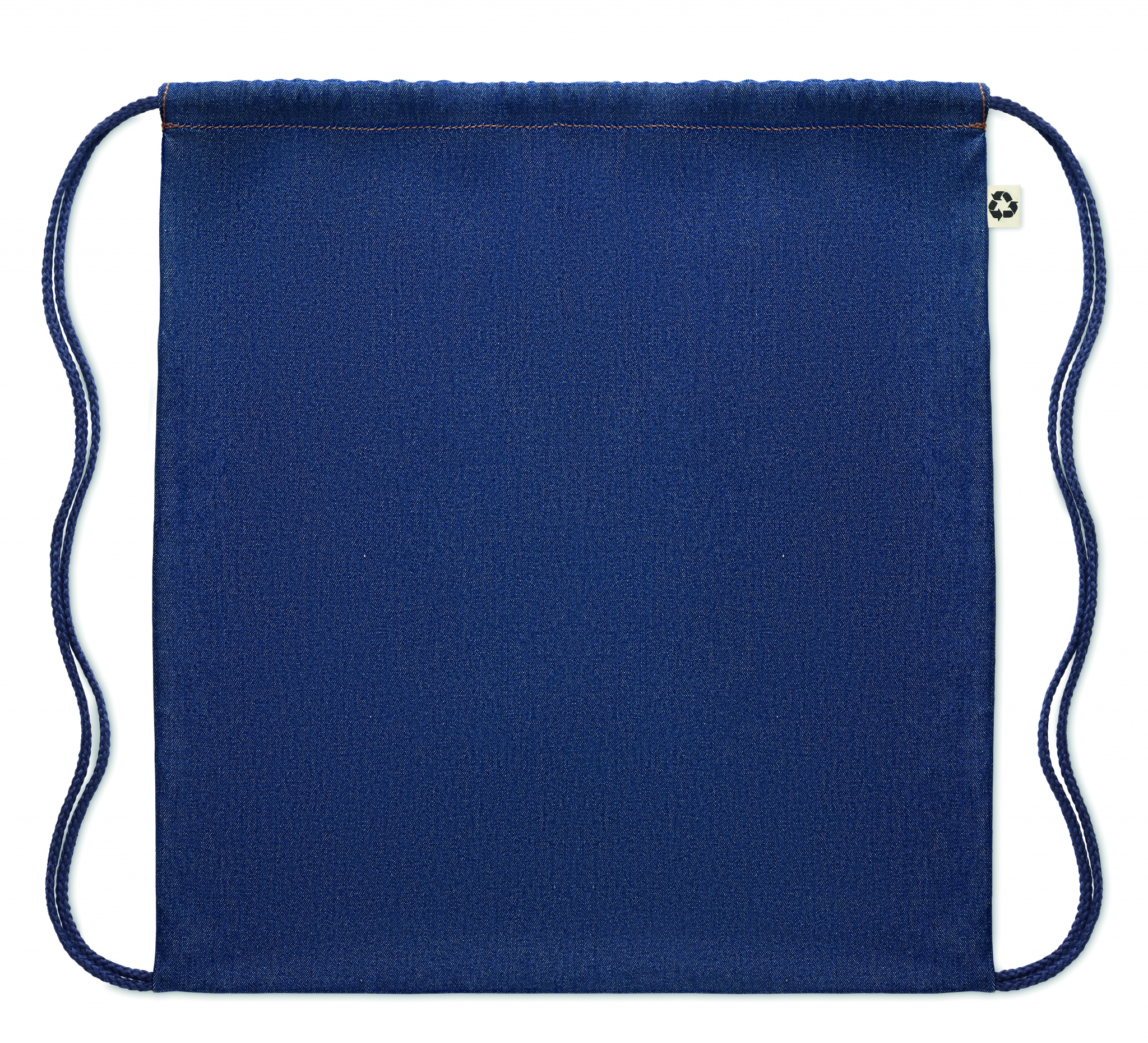 Denim Beutel mit Kordelzug. 50% recycelter Baumwoll-Denim und 50% Baumwolle. 250 g/m².