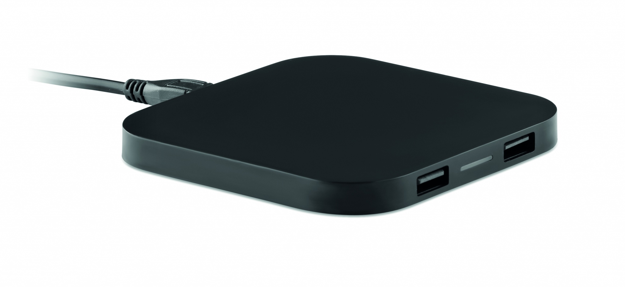 Drahtloses Ladepad mit 2 Ports 2.0 Hubs und USB Anschluss zum Aufbau einer drahtlosen Ladestation für Smartphones. Ausgangsstrom DC5V/1A (5W). Kompatibel mit den neuesten Android Smartphones, iPhone® 8, 8S und X und höher.