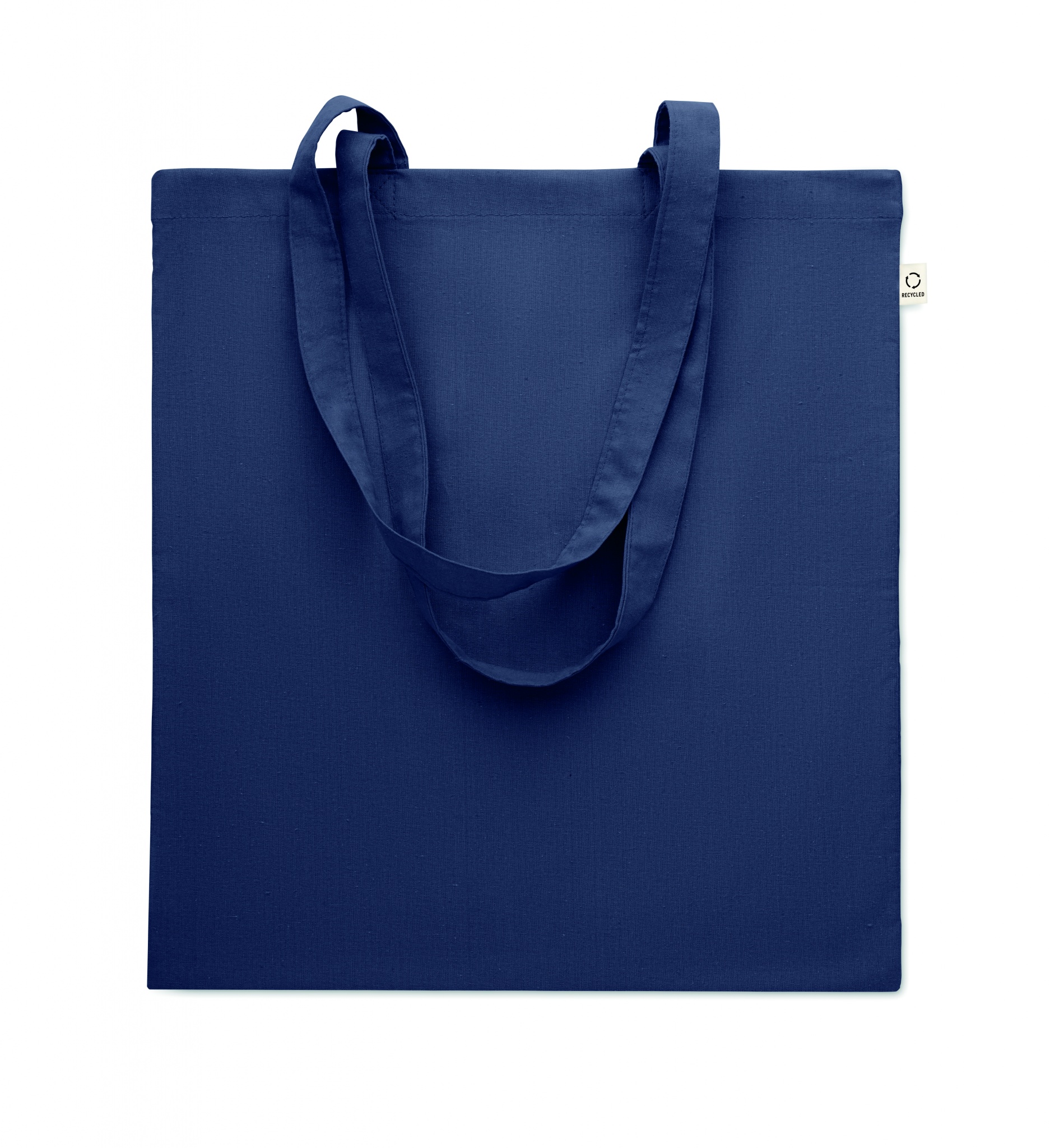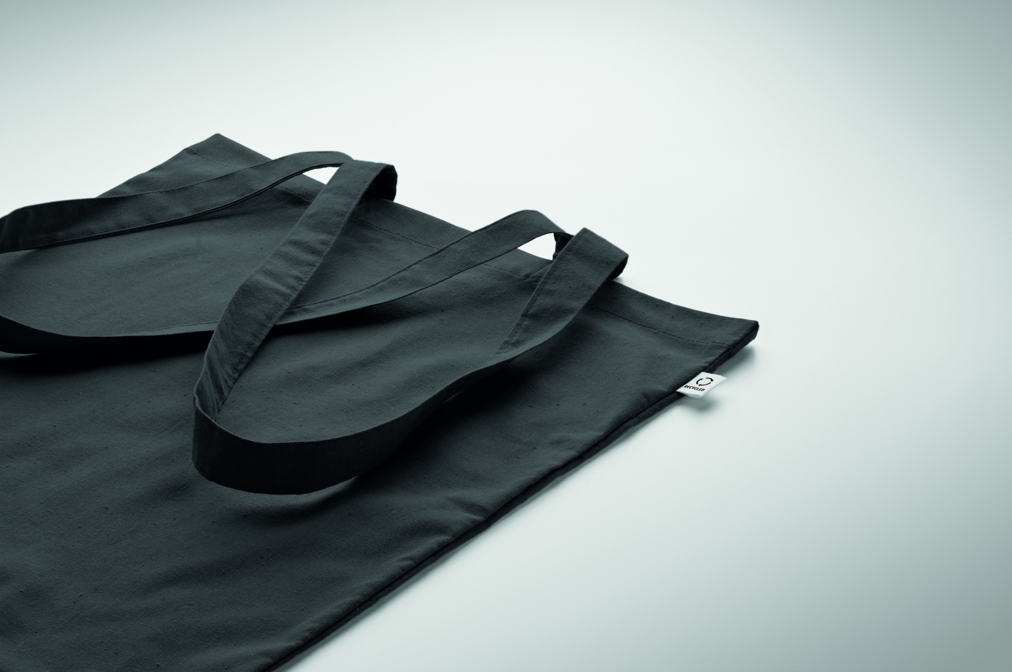 Einkaufstasche aus recycelter Post-Consumer-Baumwolle (70 % recycelte Baumwolle und 30 % RPET) mit langen Tragegriffen. 140 g/m².