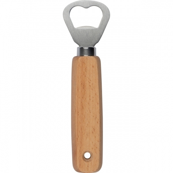 Klassischer Flaschenöffner mit Holzgriff. Ihre Werbung gravieren wir auf den Holzgriff.