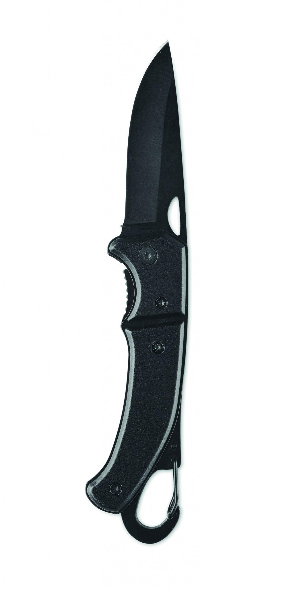 Klappmesser aus Aluminium mit Karabiner. Klinge aus Edelstahl. Der Karabiner ist NICHT als Sicherung beim Klettern geeignet.