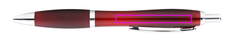 Transparenter Kugelschreiber mit Soft-Touch-Griffzone und blauschreibender Großraummine. Ihre Werbung drucken wir auf die rechte Seite des Clips.