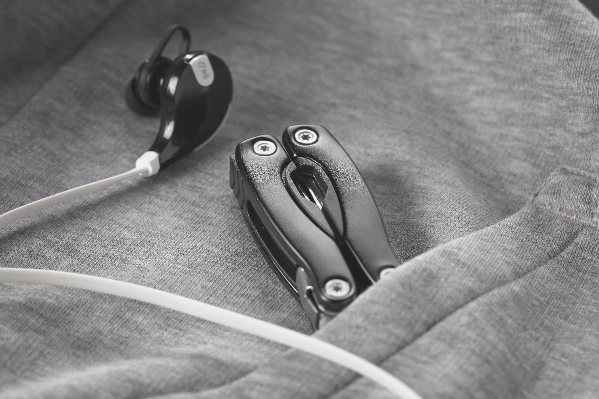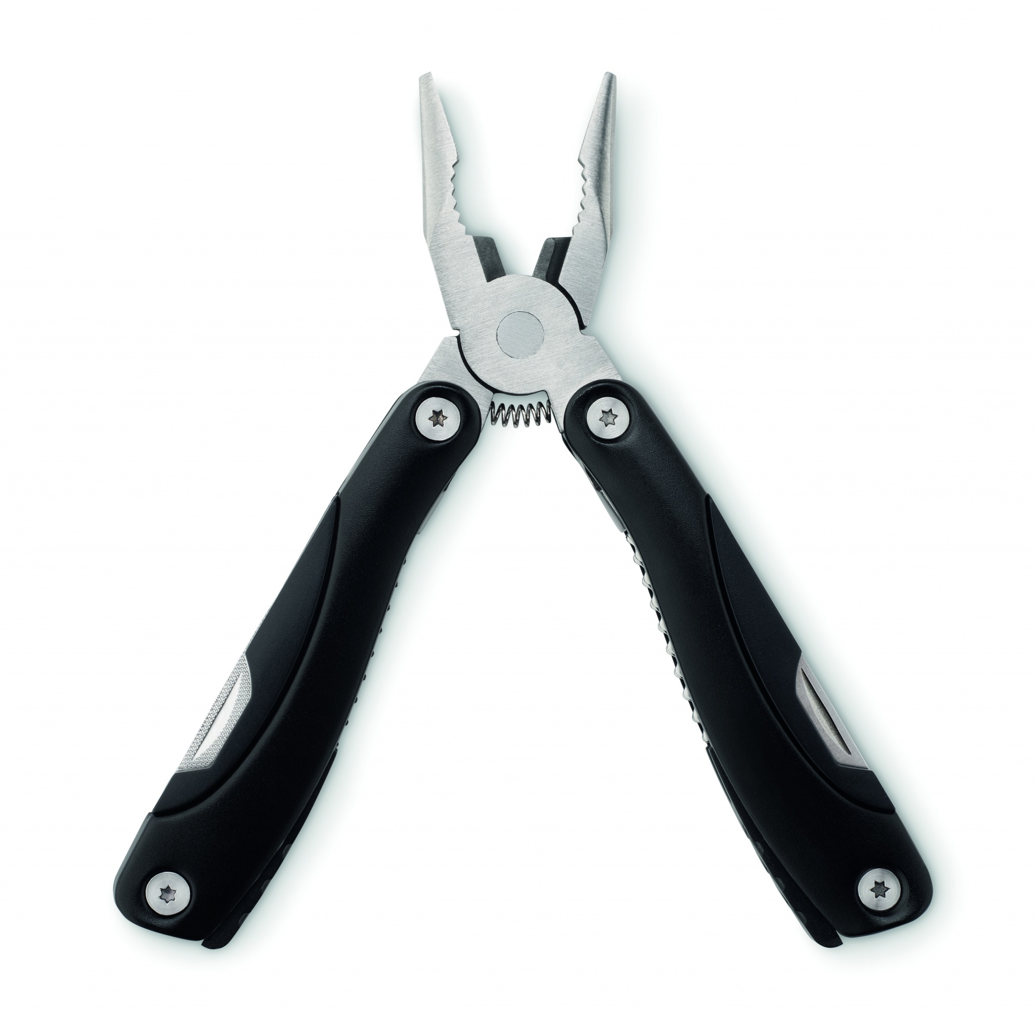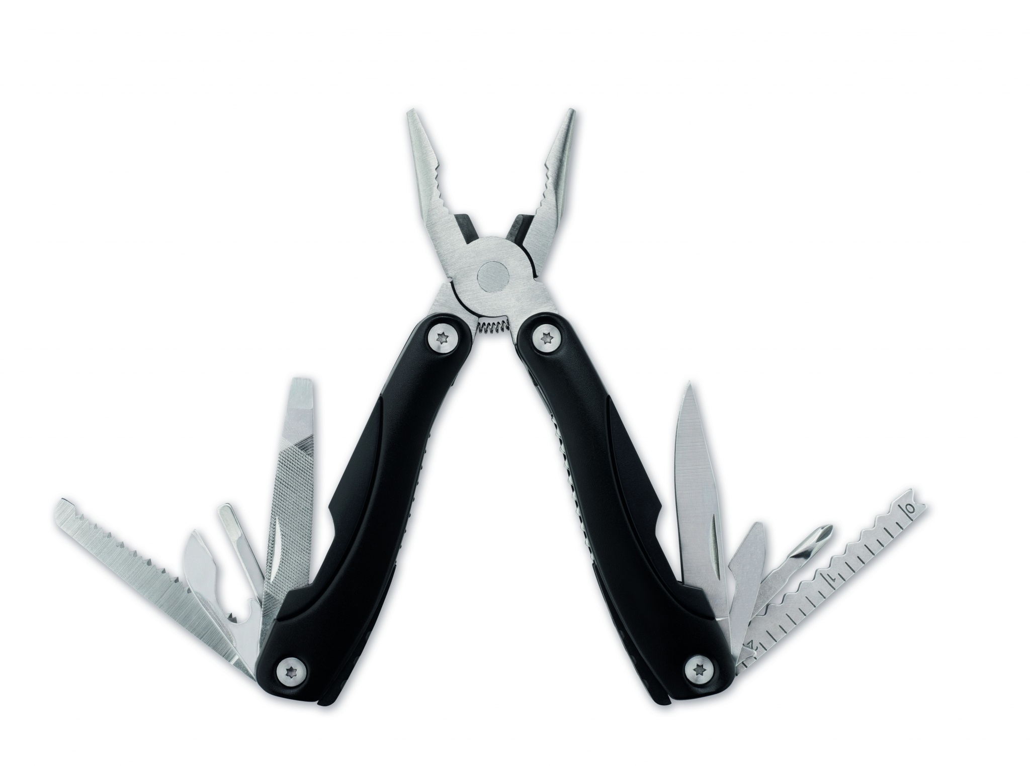 Multifunktionsmesser aus Edelstahl/ABS mit 9 Funktionen. In einem Etui aus 600D Polyester.