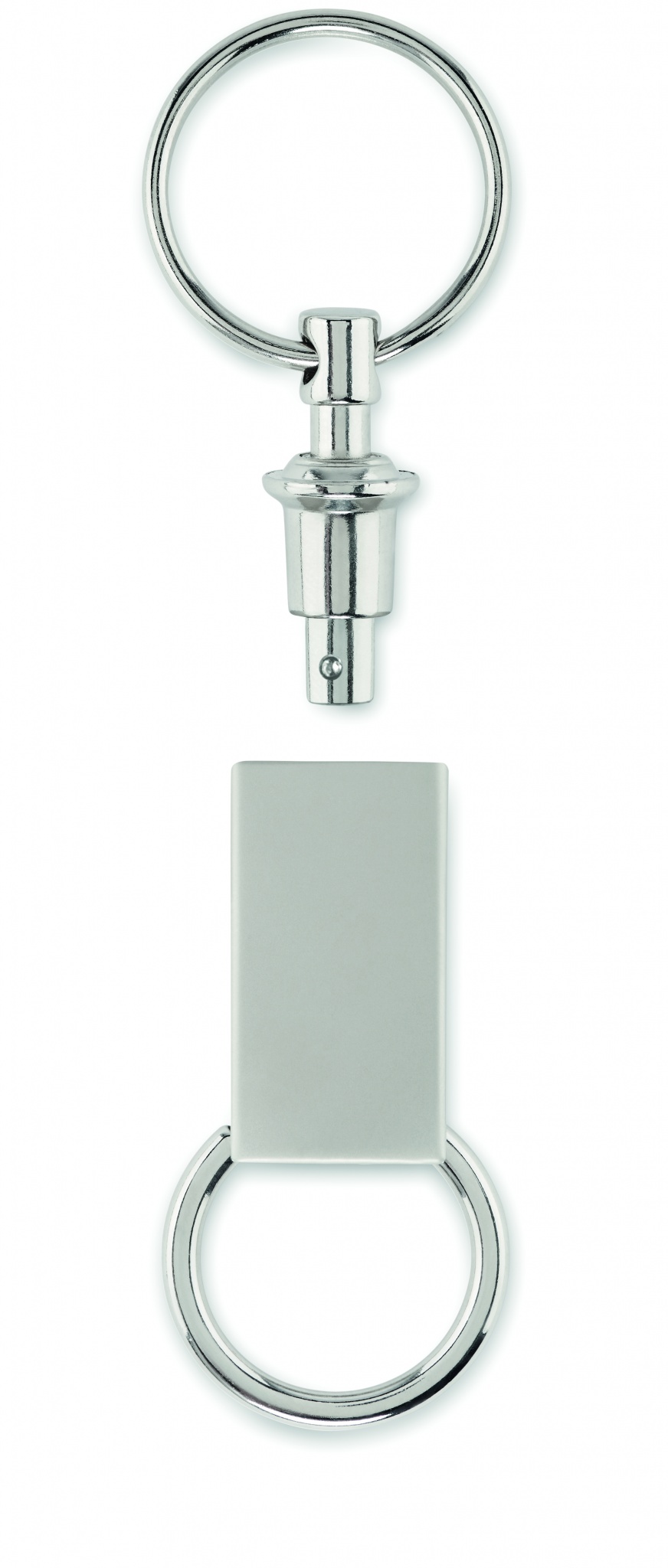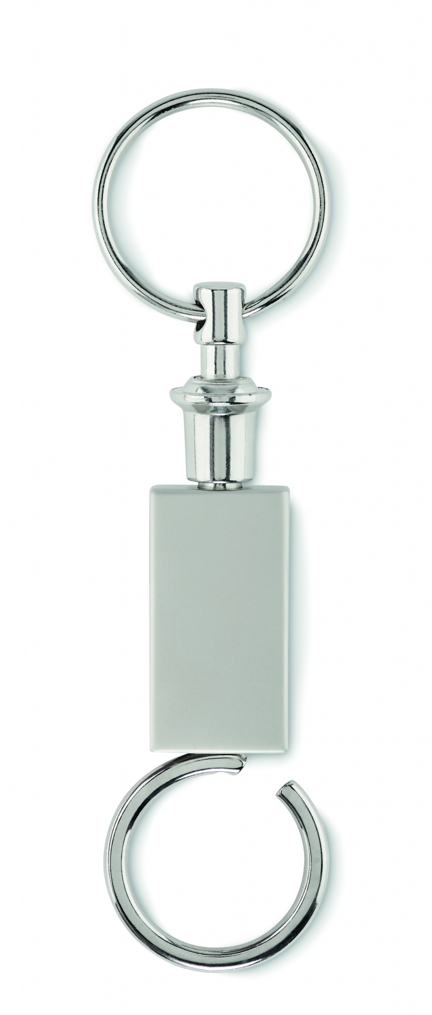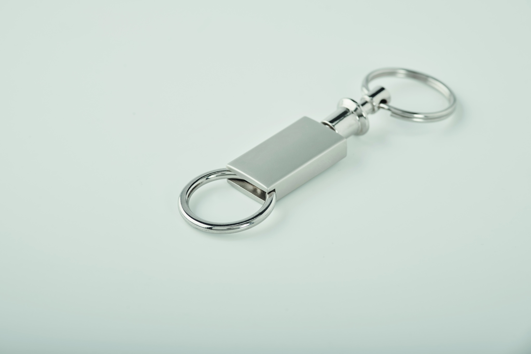2in1 Schlüsselring aus Zinklegierung. Durch Ziehen können Sie die beiden Schlüsselringe voneinander trennen.