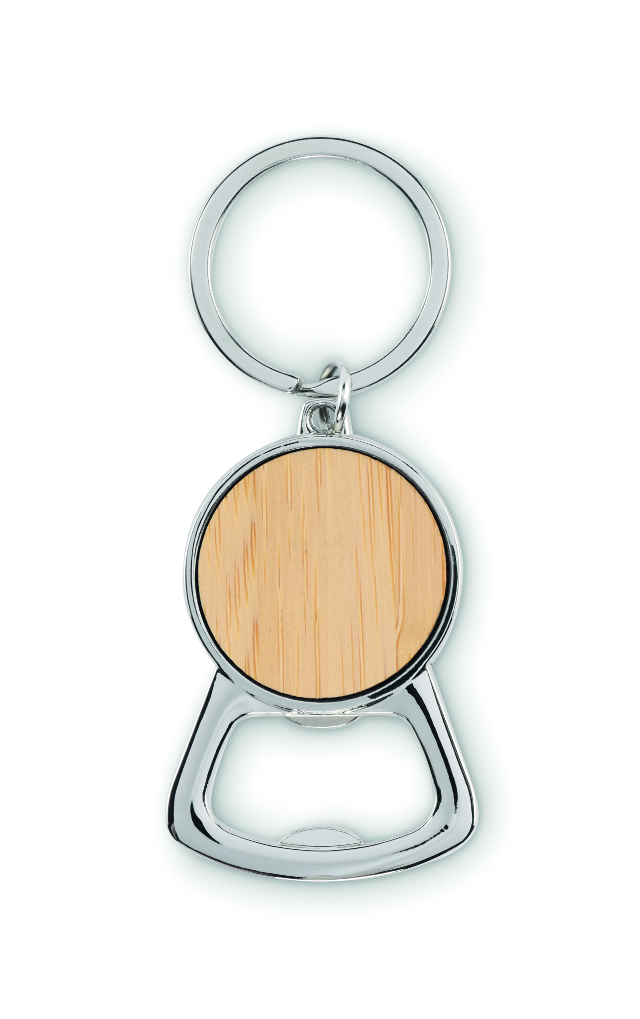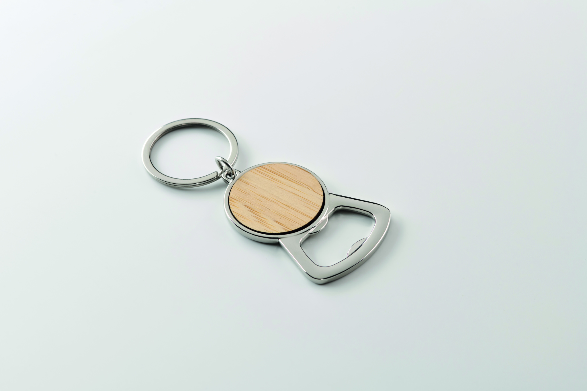 Schlüsselring mit Kapselheber. Metall mit Bambus-Detail.