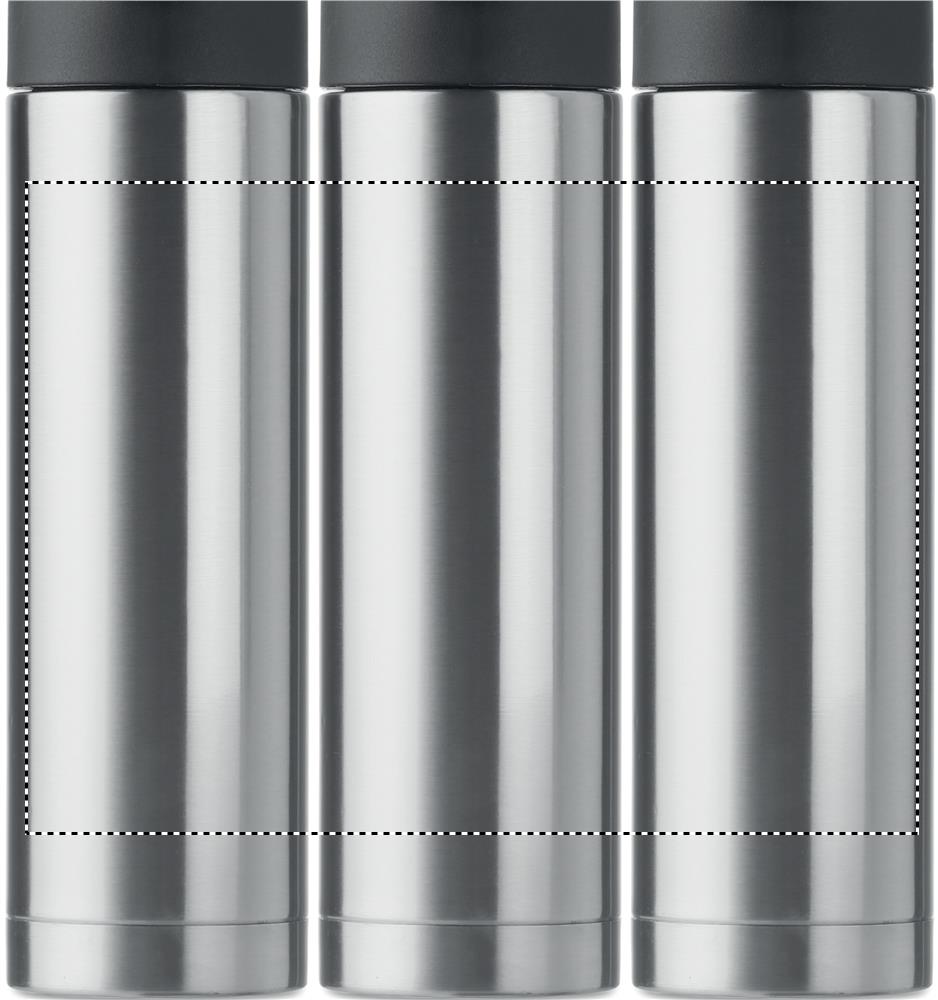 Doppelwandige Trinkflasche aus Edelstahl mit Sicherheitsverschluss im Deckel und Öffnen-durch-Drücken Funktion. Mit faltbarem Griff. Füllmenge: 400 ml. Auslaufsicher.