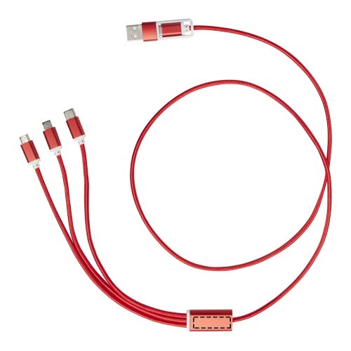 Dieses Kabel verfügt über einen USB-A- und einen Typ-C-Eingangsanschluss in Kombination mit einem Typ-C-, einem Micro-USB- und einem Lightning/Micro-USB-Kombi-Ausgangsanschluss. Diese Anschlüsse ermöglichen das Laden der meisten iOS/Android-Smartphones, Kameras, Powerbanks und Ohrhörer. Das Kabel ist 100 cm lang und besteht aus recyceltem Aluminium und RPET.