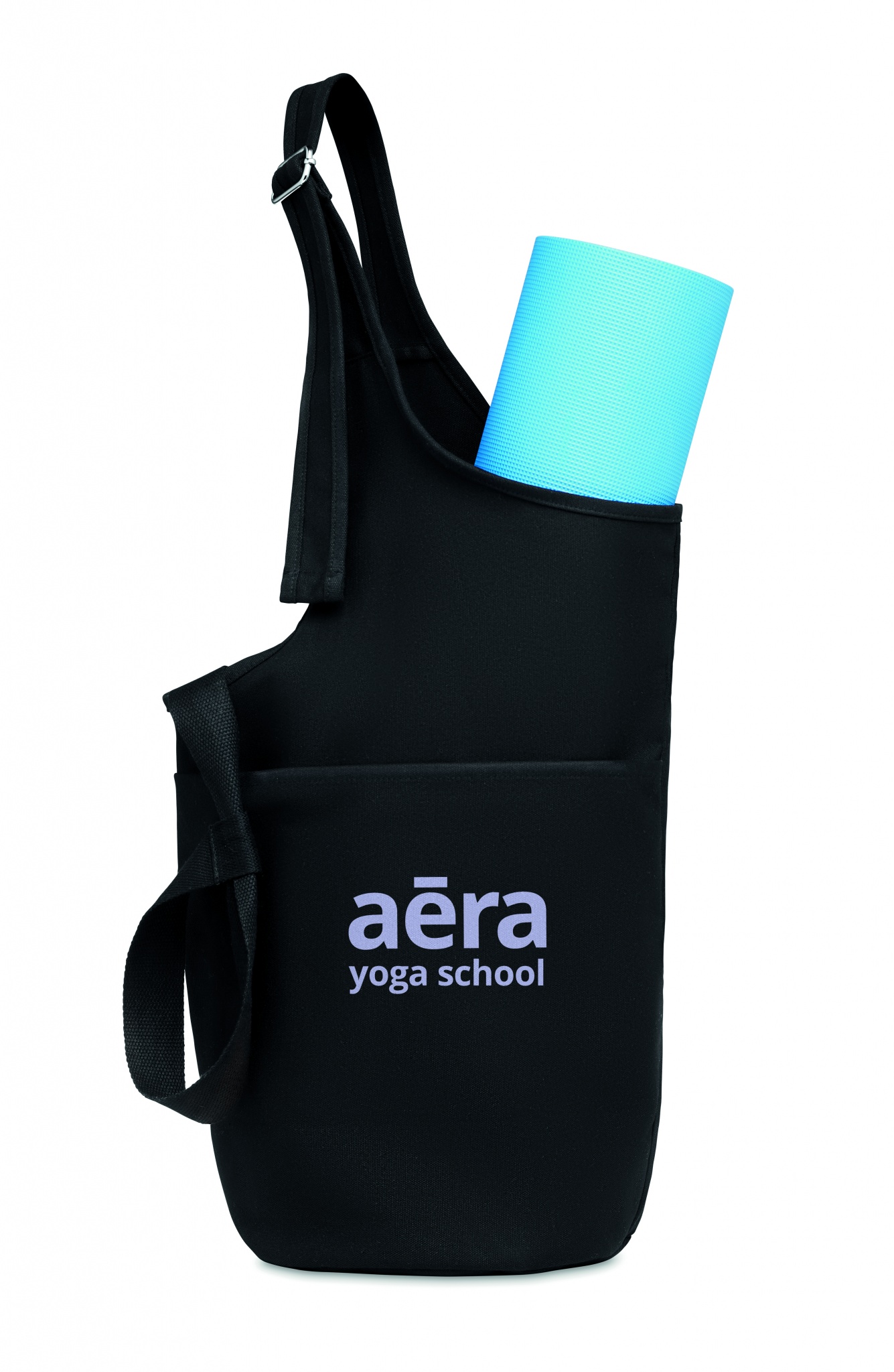 Yoga-Set mit Matte (4 mm) und Übungsgurt. Lieferung in einer Canvas Tasche 340 g/m² mit langem Griff. Produziert gemäß einem zertifizierten Standard für die Verwendung von Schadstoffen in Textilien.