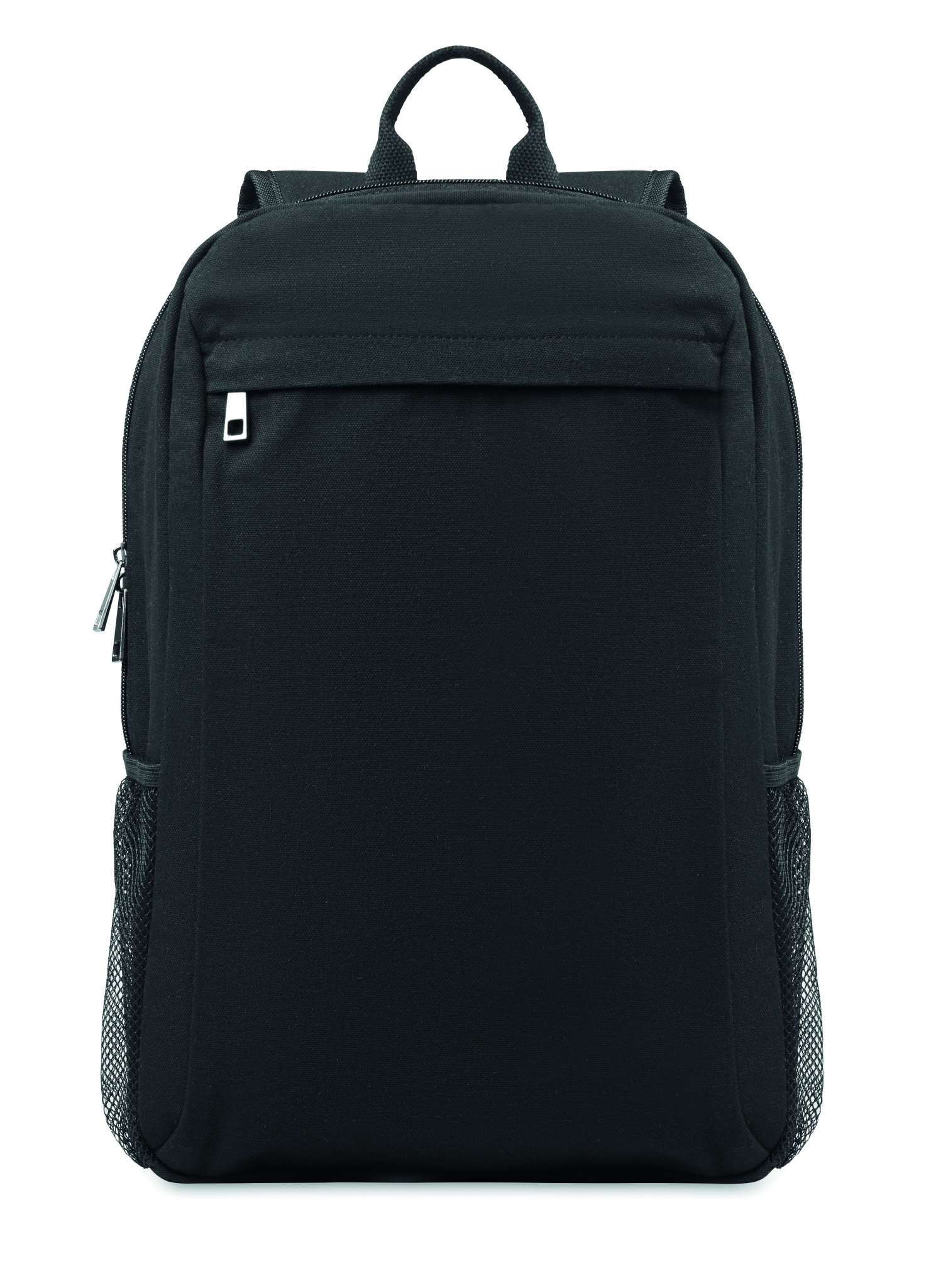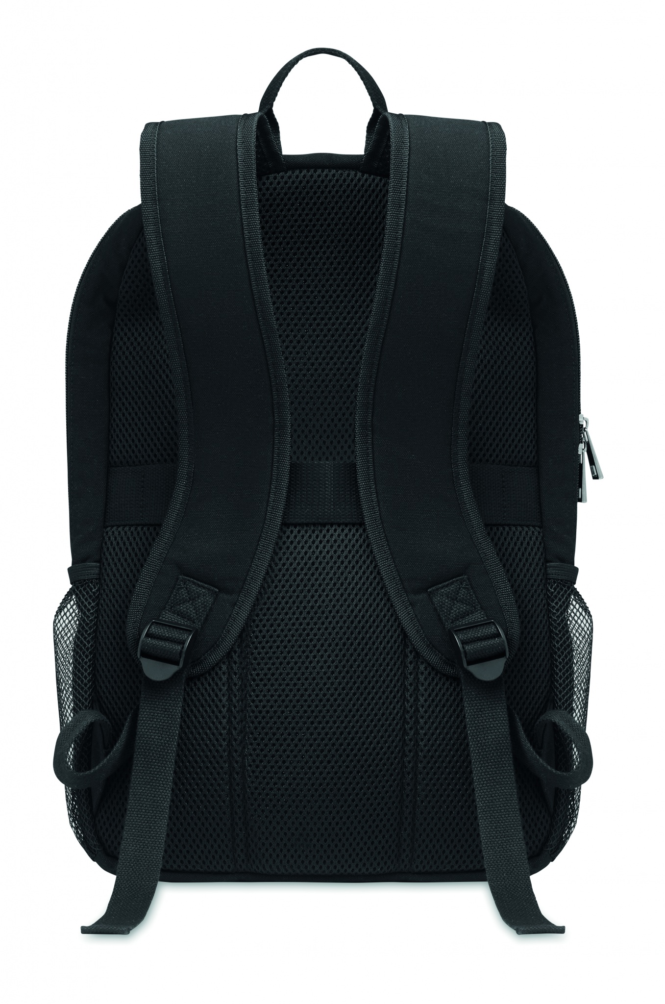 15 inch laptop backpack in 340 gr/m² washed canvas. Padded back and shoulder straps. Back trolley strap.