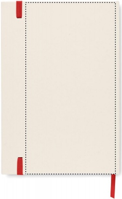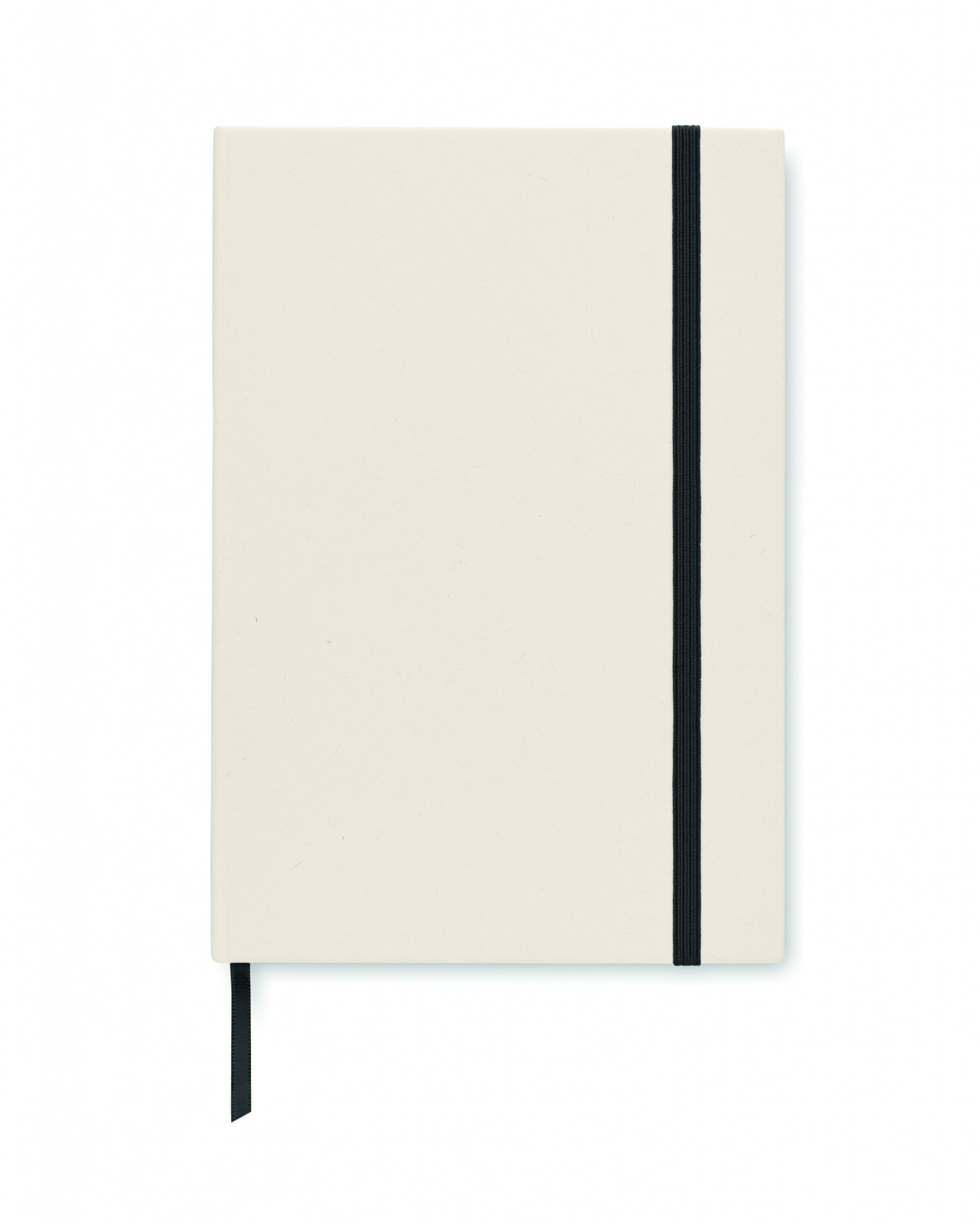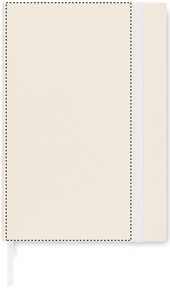 A5 notebook with hard cover made of 70% recycled milk carton pack and 30% recycled paper. Casebound. 160 lined pages (80 sheets 80 gsm) made of recycled paper. Elastic closure strap, ribbon bookmark.