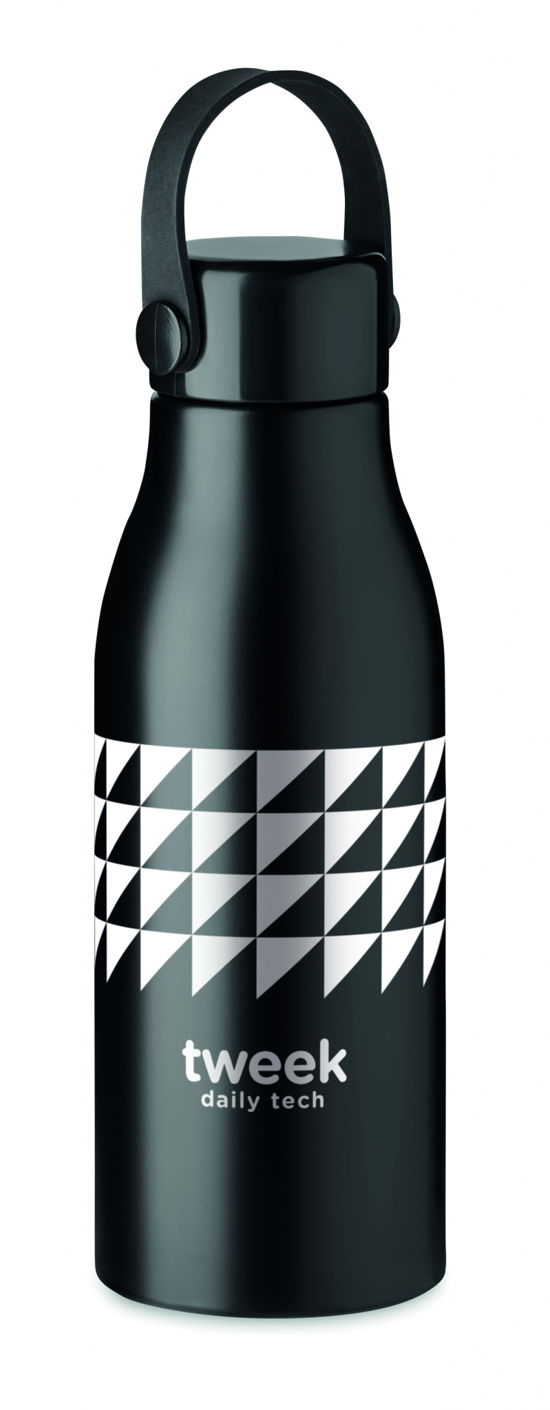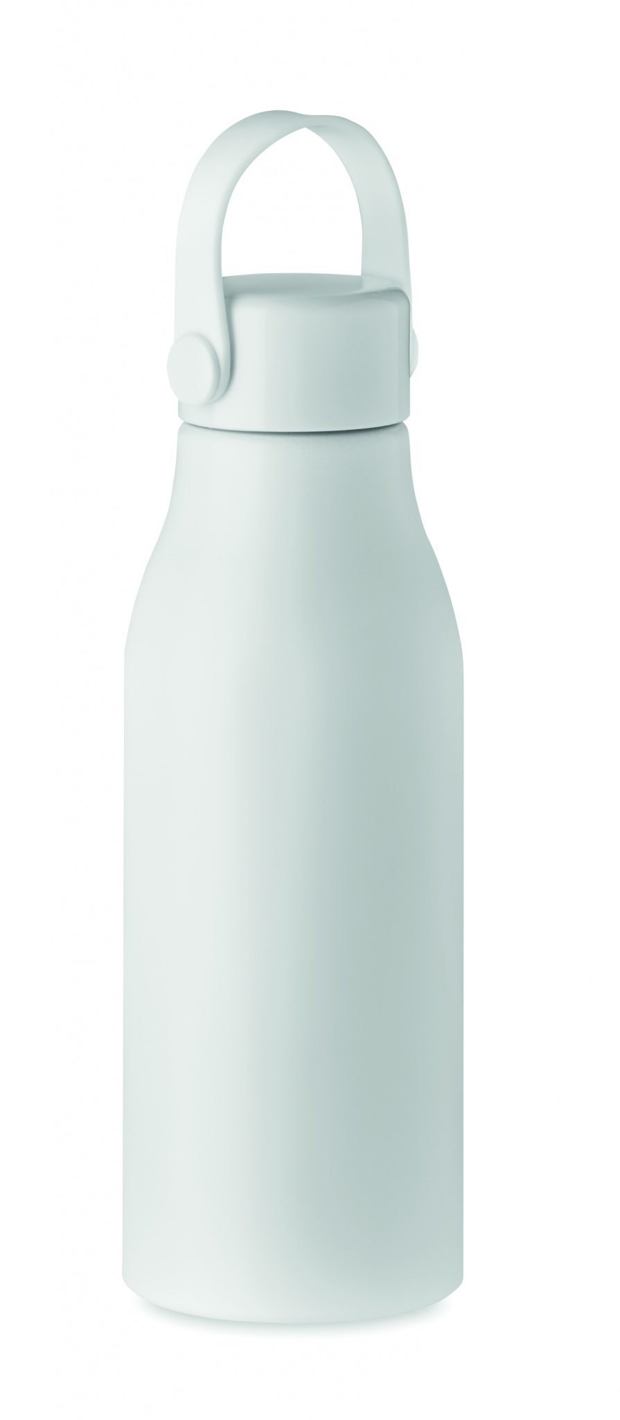 Single wall aluminium bottle with ABS lid with silicone hanger. Capacity 650 ml.