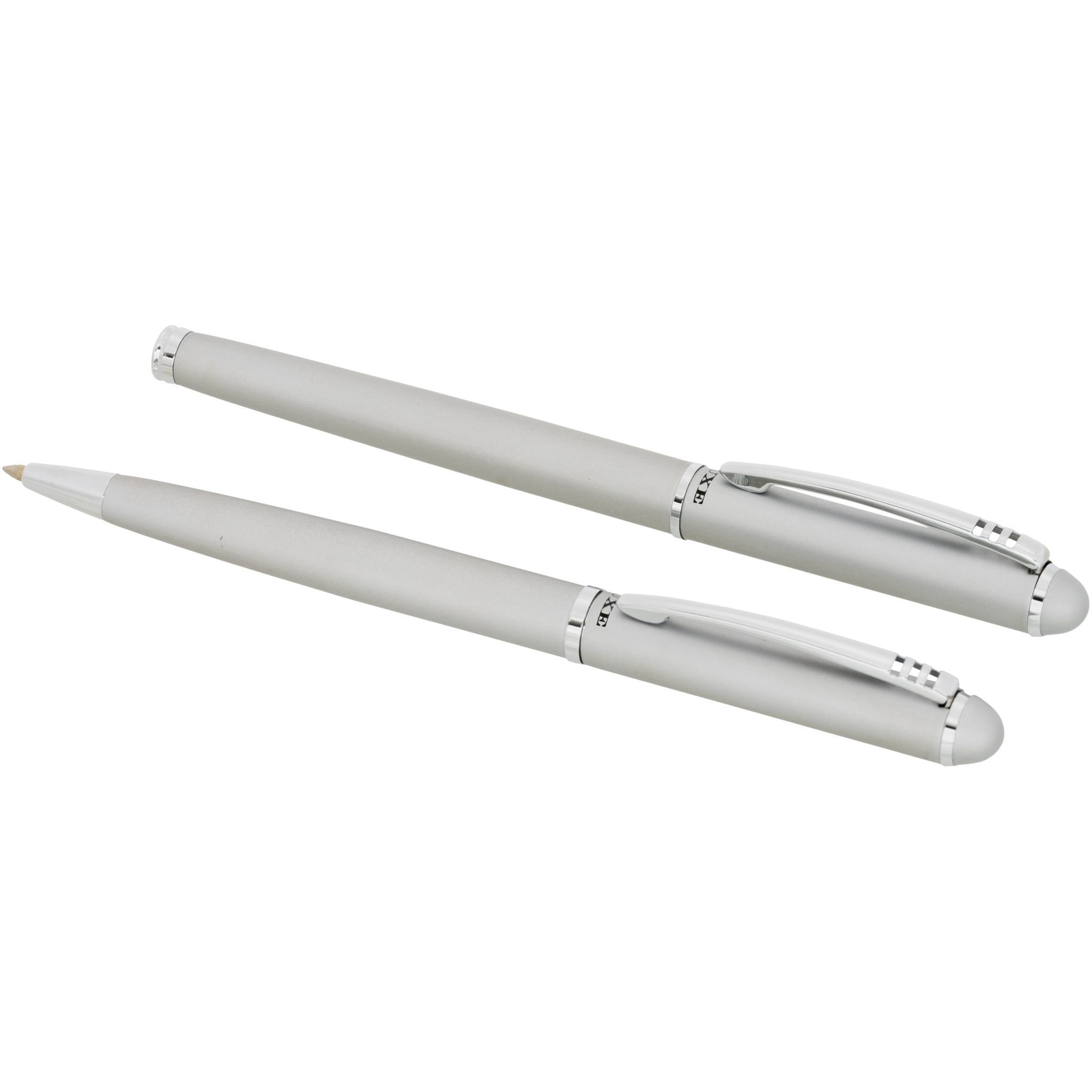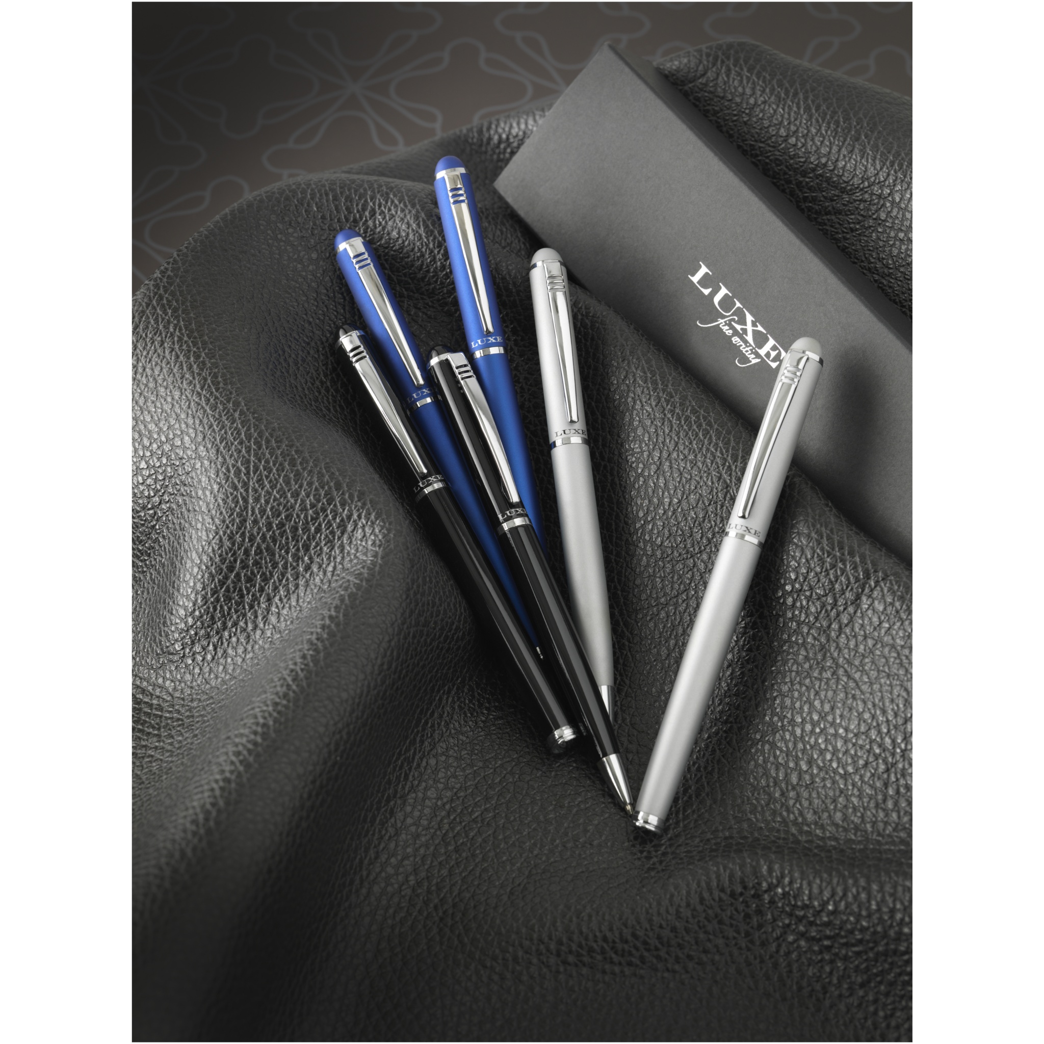 Exclusively designed twist ballpoint pen and cap type rollerball pen set. Available in Glossy Black, Matt Silver and Matt Blue. Packed in a ''LUXE'' gift box (17x5.5x3cm).