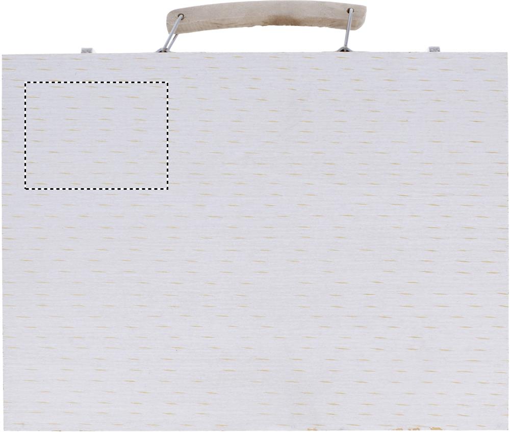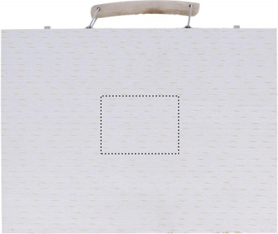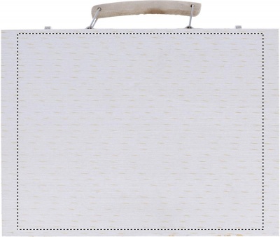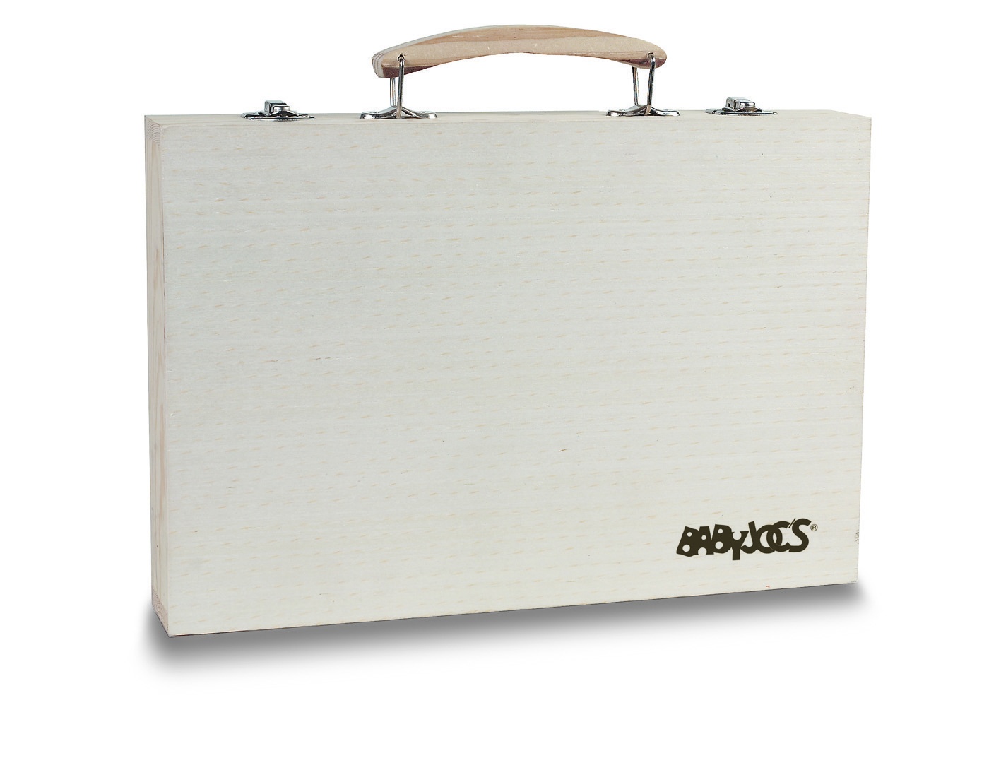 Artist's set in wooden box including 66 pieces (wax crayons, oil pastels, markers, coloured pencils, water colours, sharpener, glue, eraser, paint brush, ruler, and pencil).