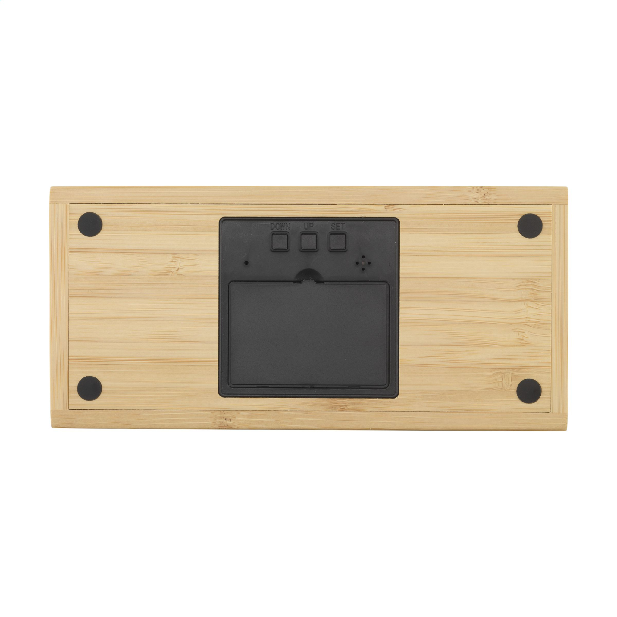 Logo trade promotional merchandise picture of: Bamboo Alarm Clock with Wireless Charger
