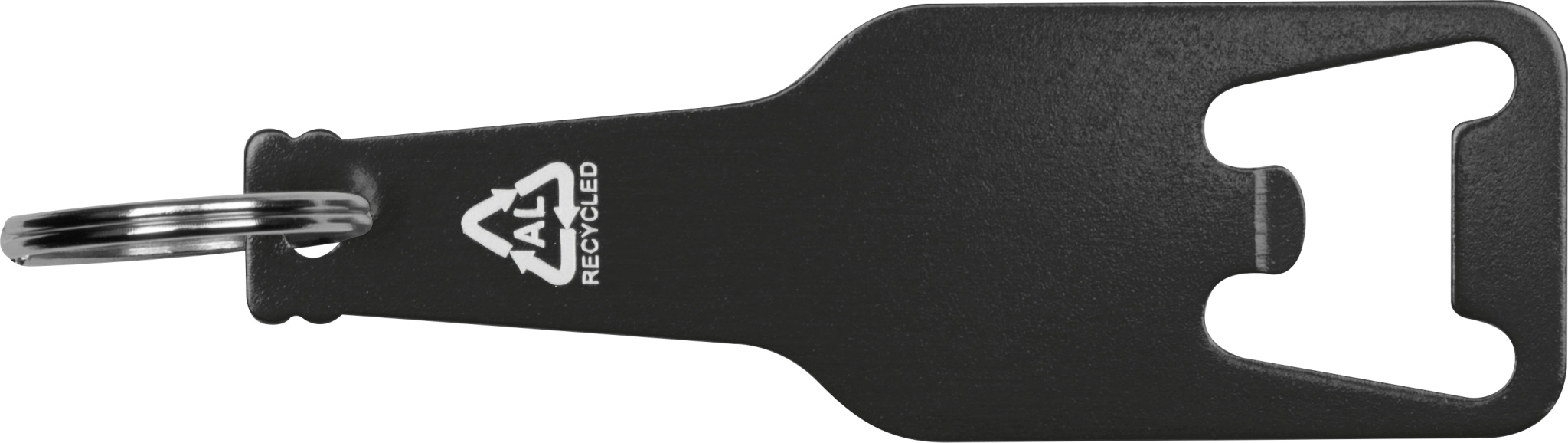 Bottle opener made of recycled aluminium including a key ring. We will laser engrave your logo on the pendant.
