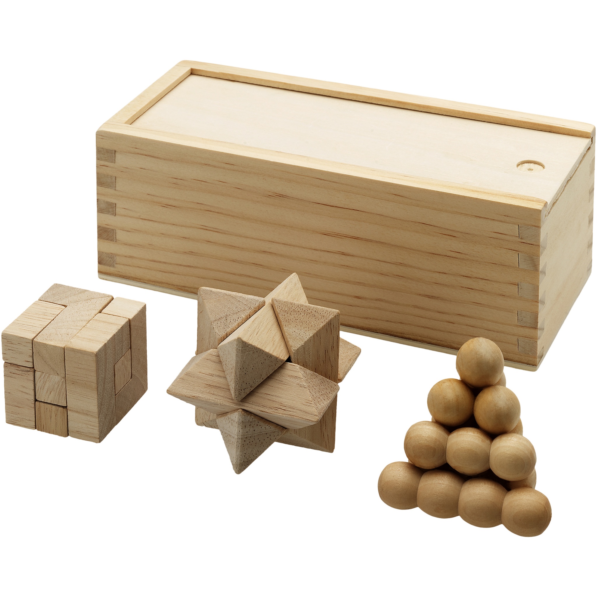 Logo trade advertising product photo of: Brainiac 3-piece wooden brain teaser set