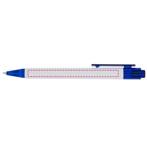 The Calypso ballpoint pen has sleek white barrels withtranslucent coloured nose and clip.