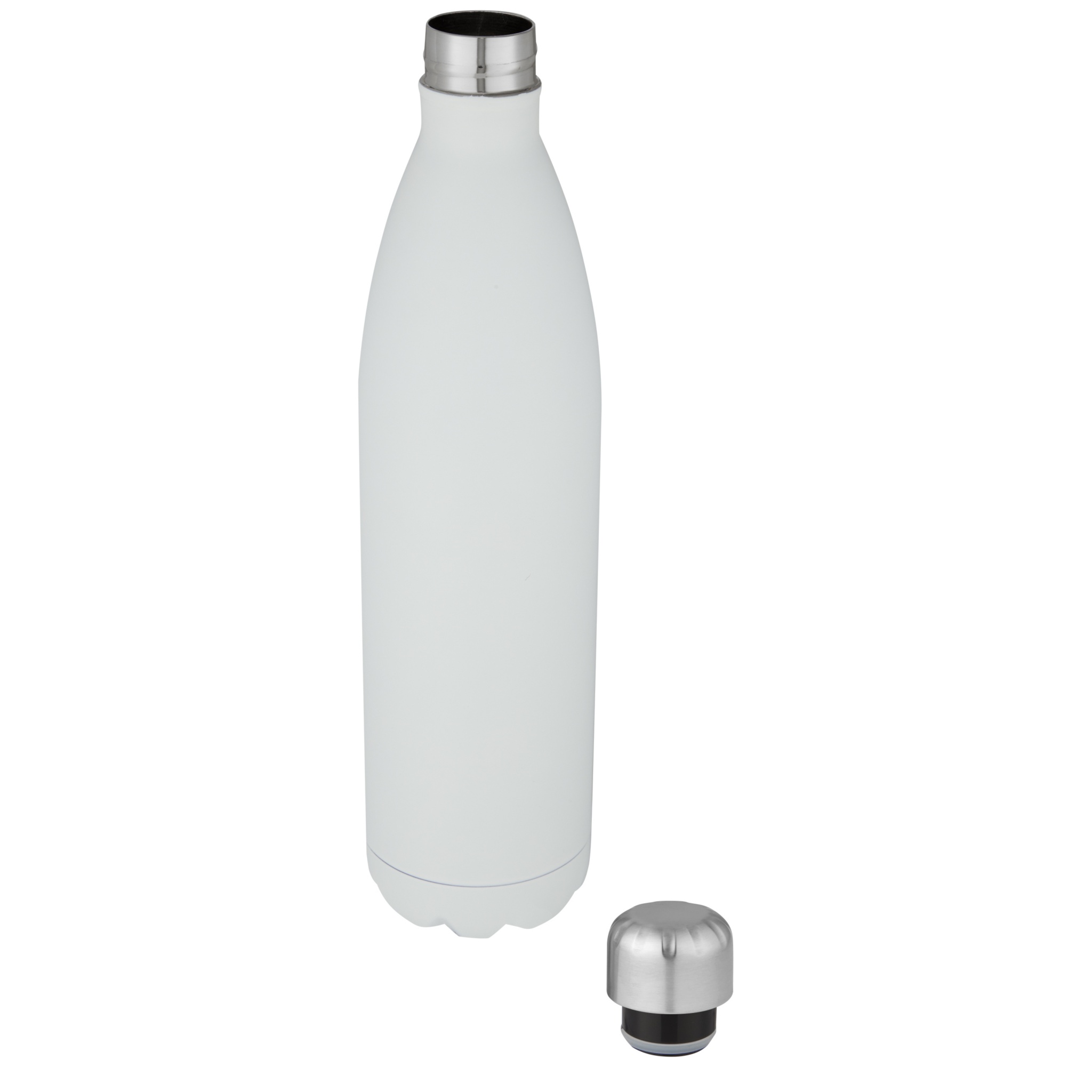 Large vacuum insulated stainless steel bottle with an iconic design. The insulated 18/8 stainless steel keeps drinks hot or cold for several hours. BPA-free, tested and approved under German Food Safe Legislation (LFGB). Tested and approved for phthalates content according to REACH regulations. Volume capacity is 1 litre. Hand wash recommended. Presented in a recycled cardboard gift box.