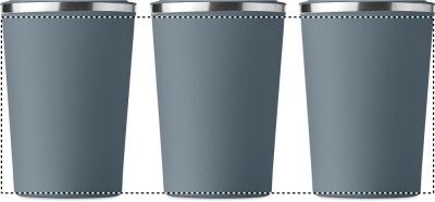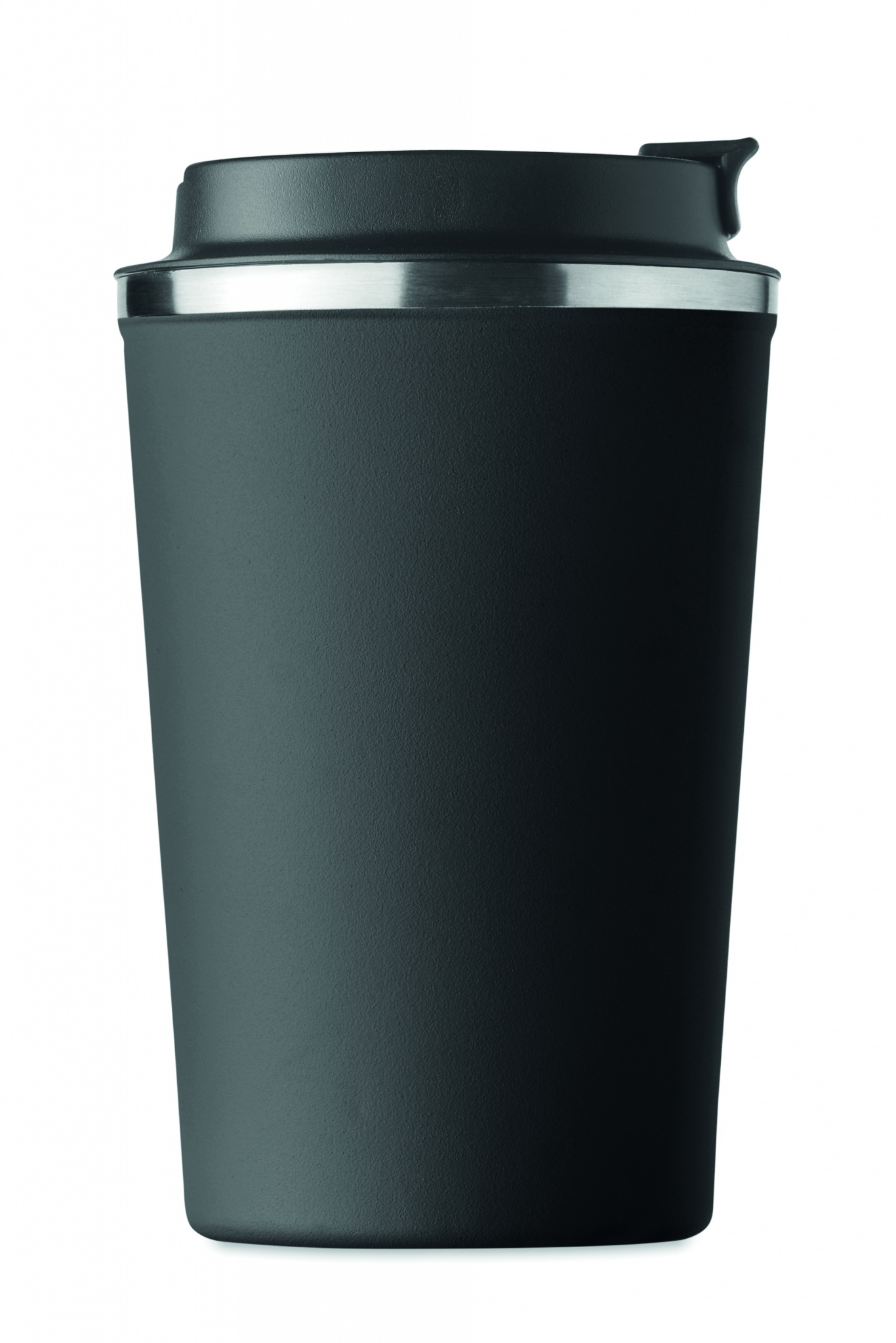 Double wall stainless steel tumbler with PP lid. Capacity: 350 ml. Leak free.
