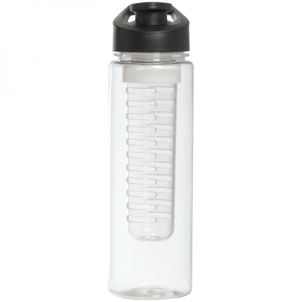 Large, leak-proof drinking bottle BPA-FREE (capacity 700 ml) with removable fruit insert. In the lid is a large drinking opening with closure and a carrying handle integrated. We print your logo on the bottle.