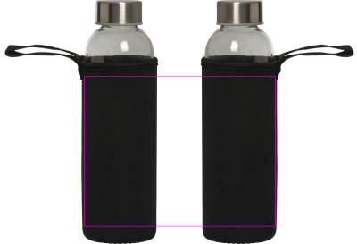 Leak-proof drinking bottle made of glass with stainless steel lid and a capacity of 500 ml. The bottle is delivered in a matching neoprene sleeve with carrying strap. We print your logo in the center of the sleeve. Engraving on the lid or bottle and printing on the bottle possible on request.