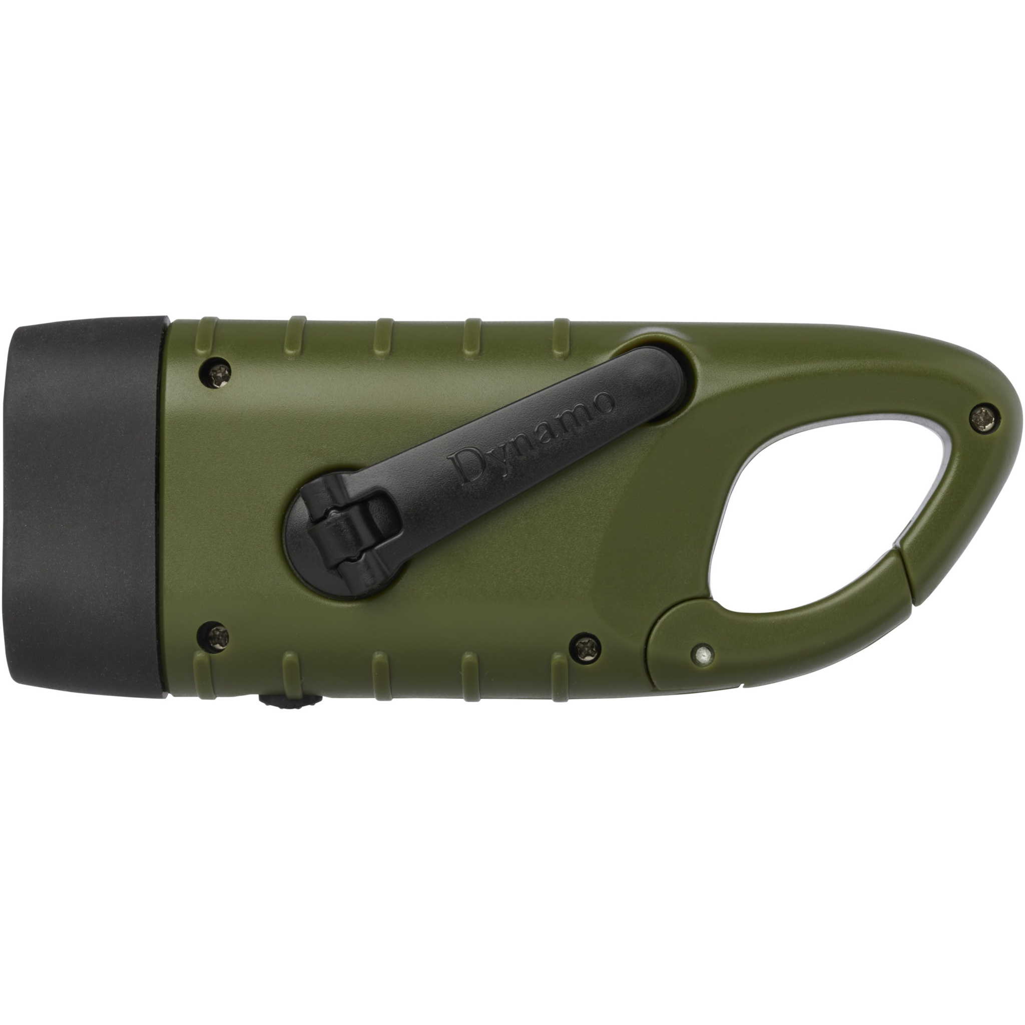 Helios recycled plastic solar dynamo flashlight with carabiner, Army green