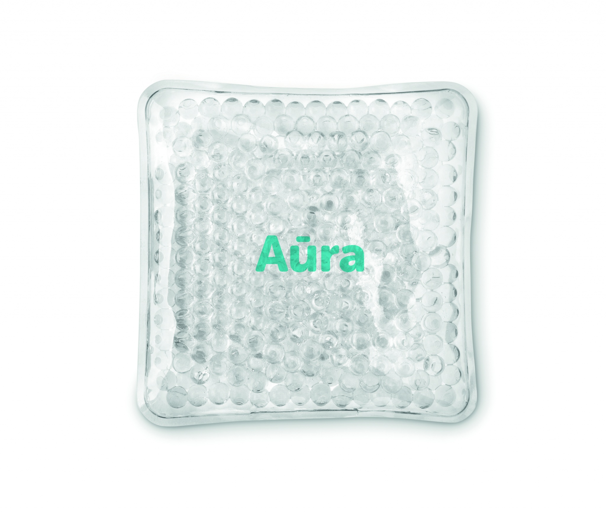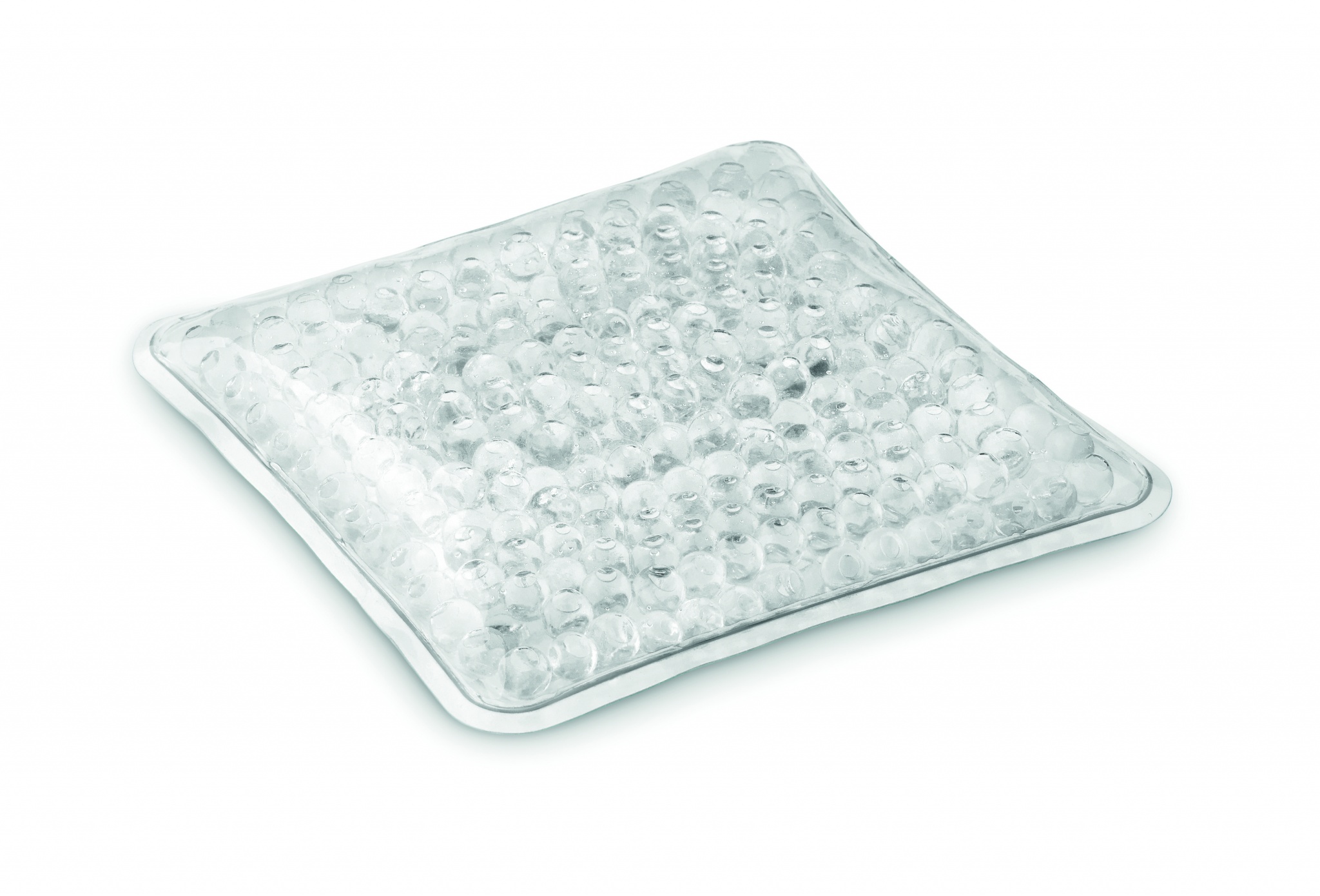 Hot and cold pack with gel beads inside in PVC transparent bag.