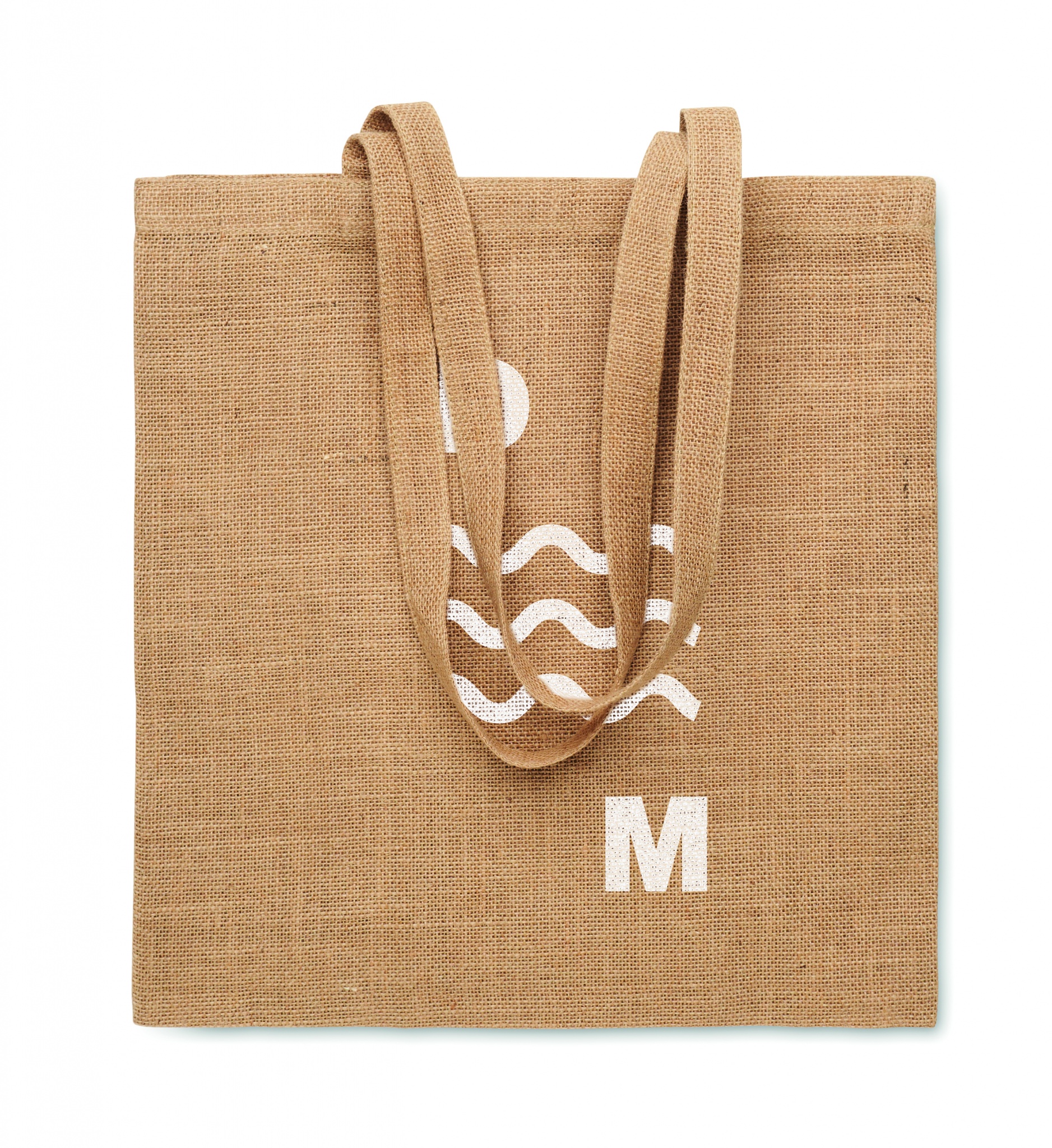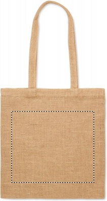 Jute shopping bag with long handles.