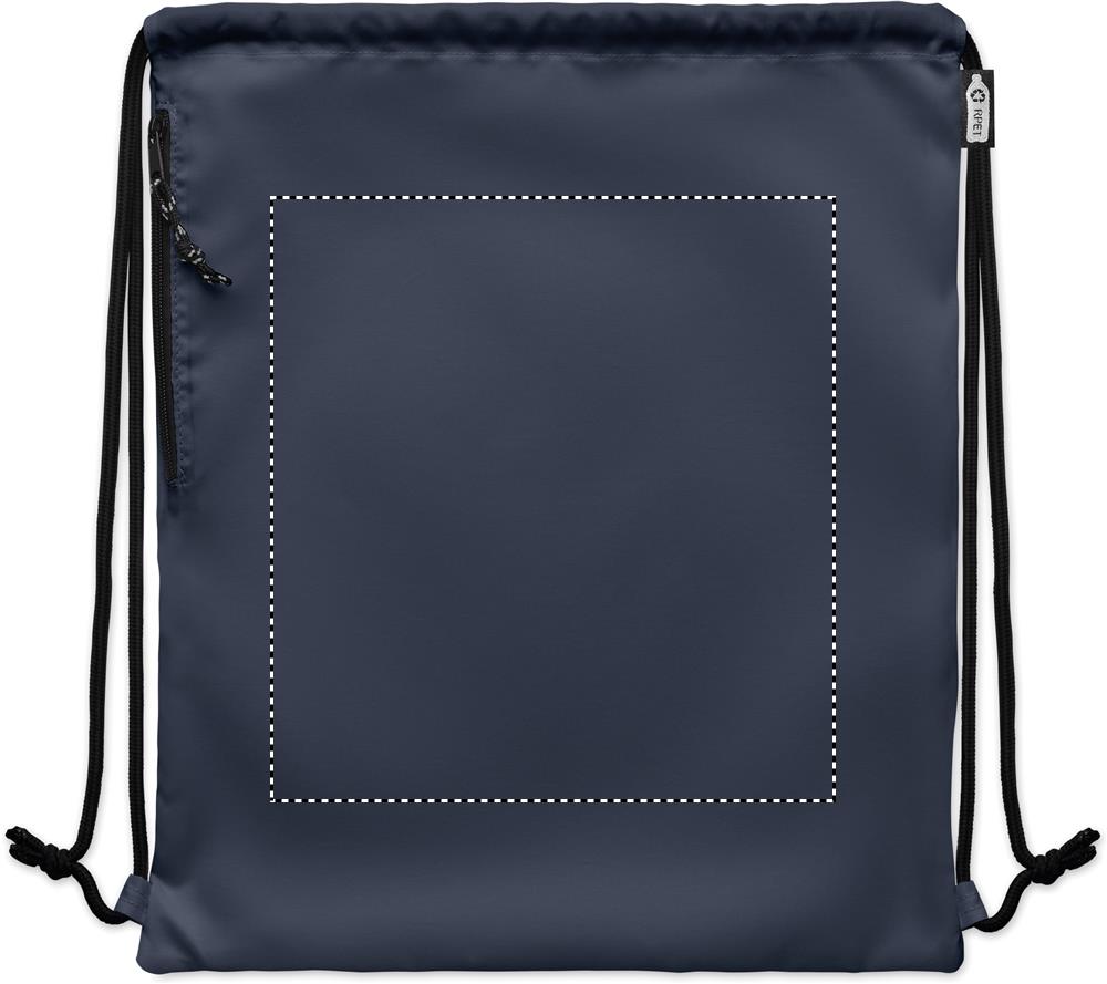 Large drawstring bag in 300D RPET polyester with side zippered outer pocket.