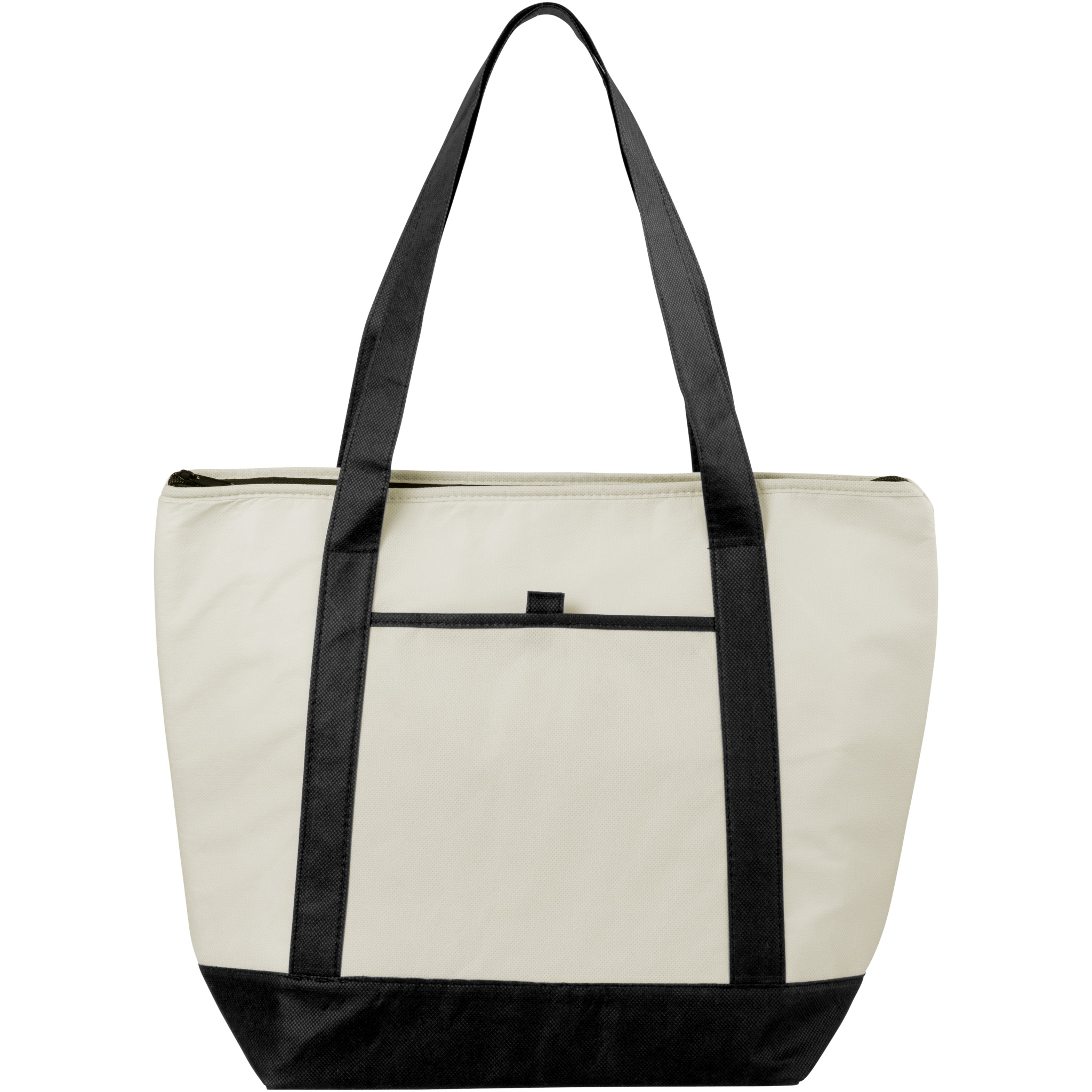 The sleek-designed Lighthouse cooler tote looks like an ordinary bag, but looks can be deceiving. Put a cold can in the large main compartment, close the zipper, and the product will stay refrigerated. The 28 cm long handles make the bag easy to carry on the shoulder. The cooler bag has an open front pocket and pen loop (accessories not included). The cooler tote consists of 80 g/m² PP plastic, a versatile and lightweight material.