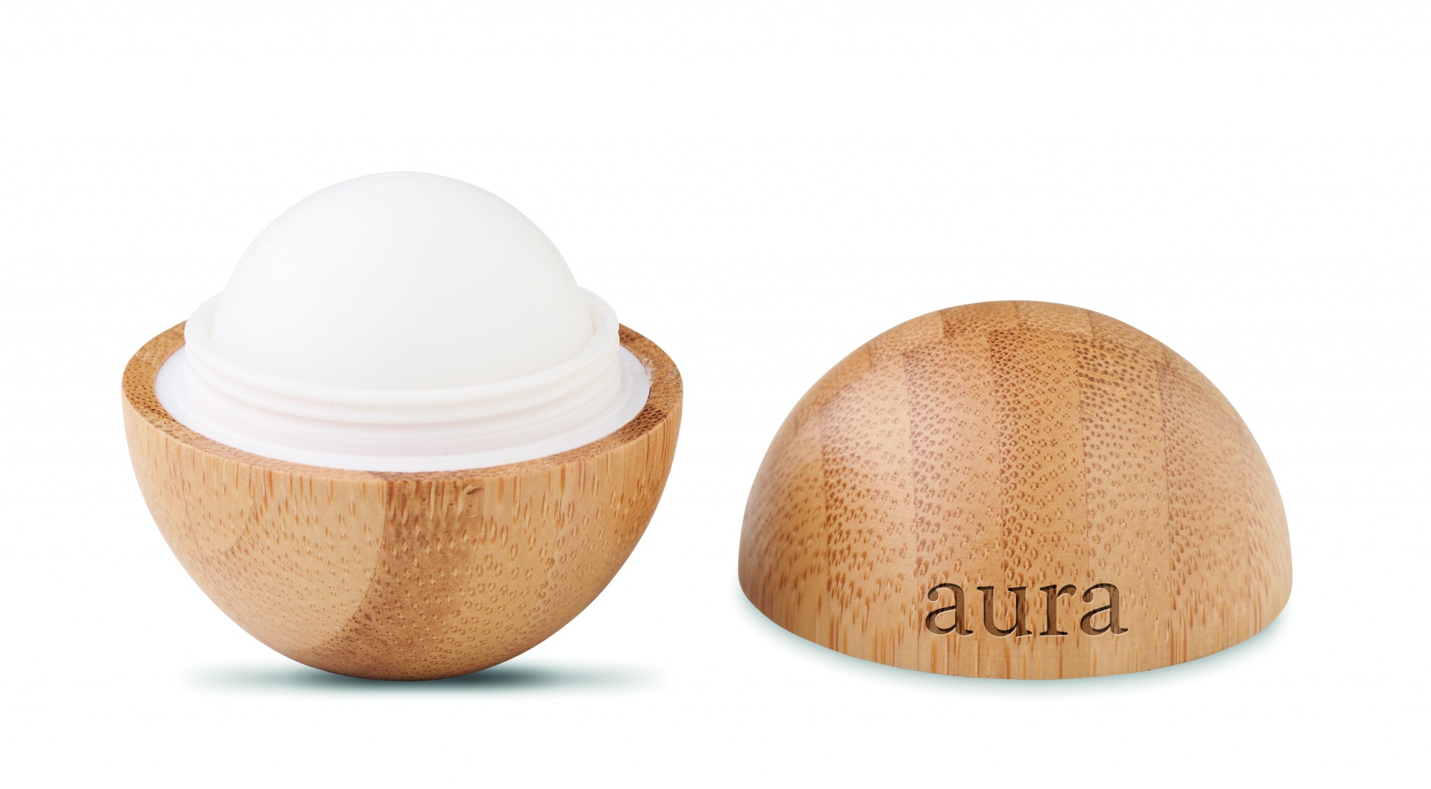 Logo trade promotional item photo of: Lip balm in round bamboo case