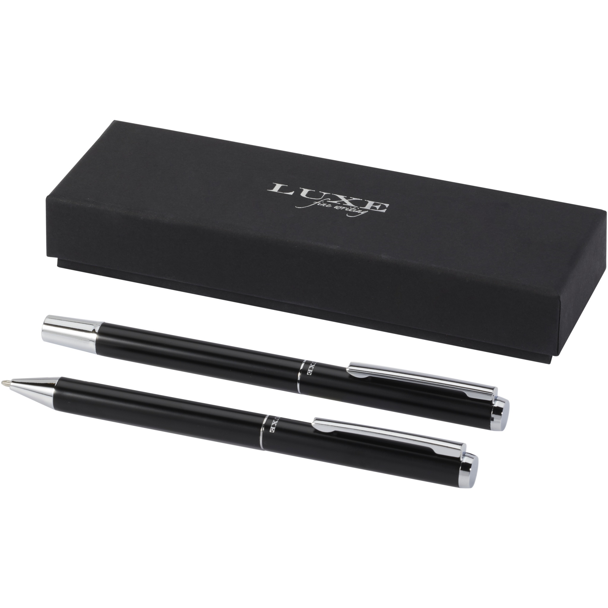 Lucetto recycled aluminium ballpoint and rollerball pen gift set, Solid black