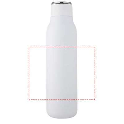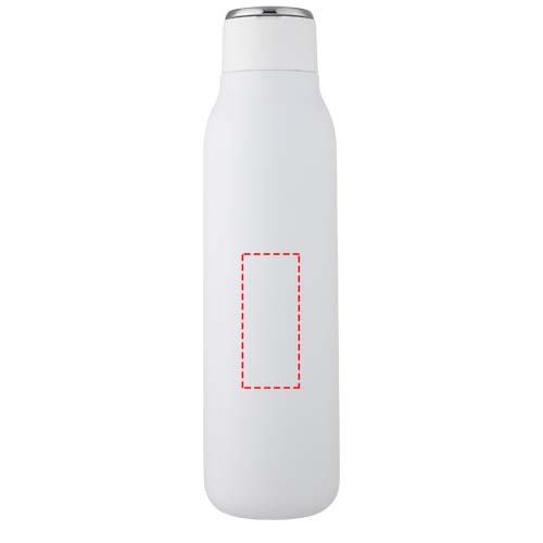 The Marka bottle features stainless steel vacuum construction with copper insulation that keeps drinks hot or cold for several hours. The insulated 18/8 stainless steel construction prevents condensation on the outside of the bottle, and the on-trend powder-spray finish makes it extra durable. It also features a screw-on, spill-resistant lid and a durable, zinc-alloy hand loop. BPA-free, tested and approved under German Food Safe Legislation (LFGB). Tested and approved for phthalates content according to REACH regulations. Fits most standard car cup holders. Volume capacity is 600 ml. Hand wash recommended. Presented in a recycled cardboard gift box.
