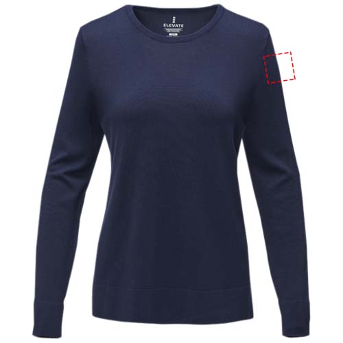 The Merrit women's crewneck pullover – a fusion of timeless style and comfort. Its classic crew neck is complemented by flat knit rib details on the collar, cuffs, and bottom hem, providing a sophisticated charm suitable for any occasion. Made from viscose and nylon blend in a 12-gauge flat knit, it offers a blend of softness, durability, and a lightweight feel. Elevate your wardrobe with the versatile Merrit pullover that embodies elegance and quality. This pullover is designed with a fitted shape for a feminine look.