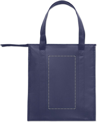Cooler bag in RPET non-woven 80gr/m². Isolation material: aluminium foil. Capacity 25L. Main compartment with zipper on top.