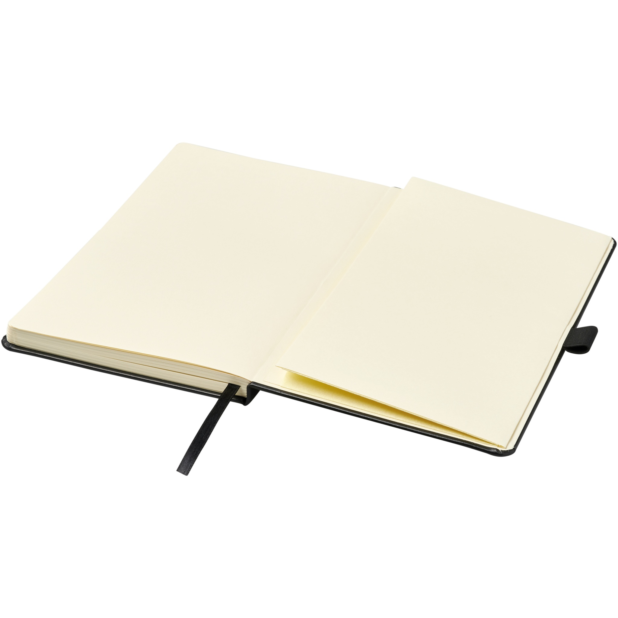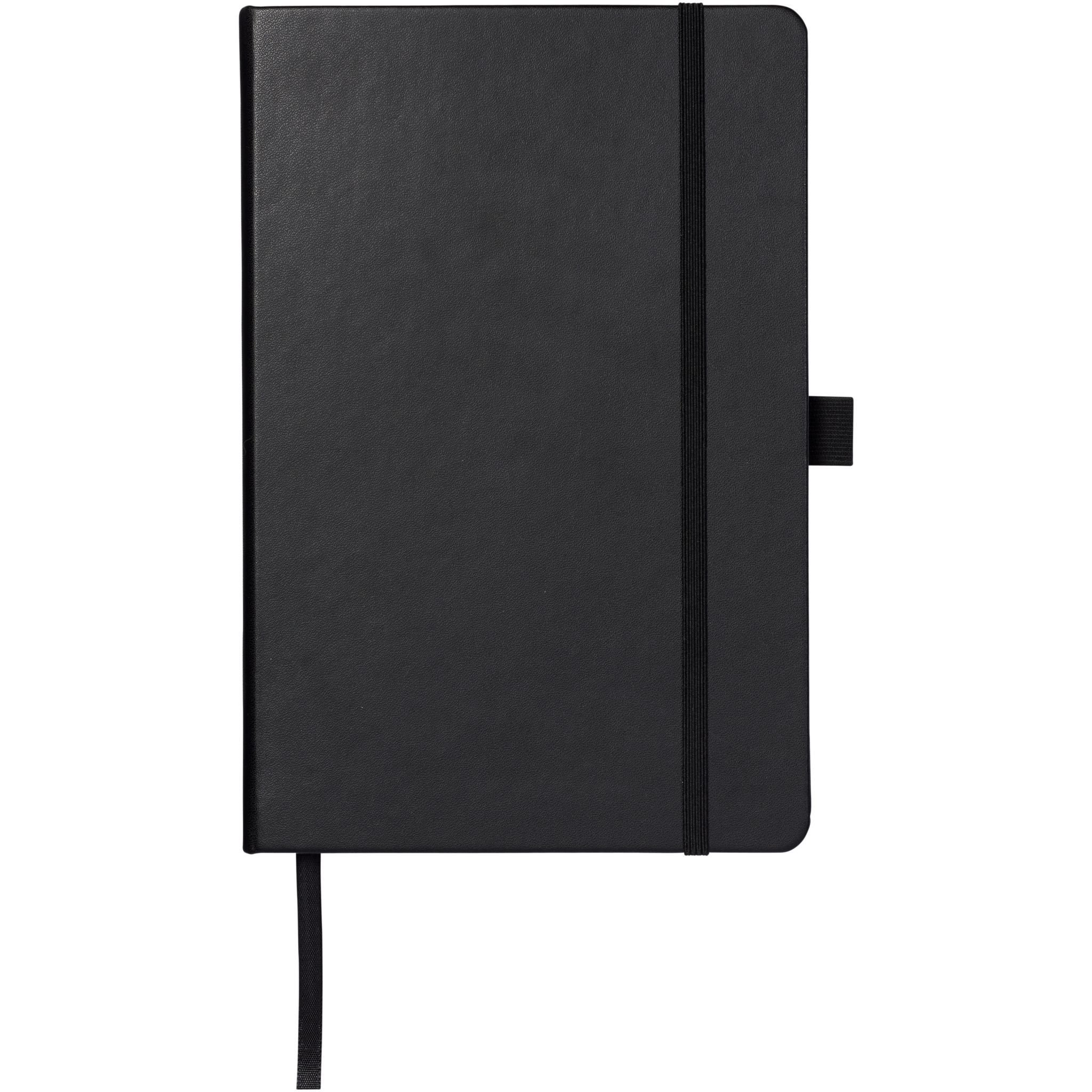 Imitation leather A5 (14.2 cm x 21.4 cm) notebook (leatherette) with elastic band, ribbon marker, pen loop and accordion back pocket. Includes 96 sheets of lined cream paper in 70 g/m2 and is offered in a Journalbook white sleeve.