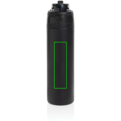 Introducing the Omni Sip Water Bottle. You deserve versatility in your hydration routine, and that's why we created the Omni Sip. This innovative bottle lets you choose how you drink. Sip through the built-in straw while holding it upright, or tilt it back to enjoy a sip from the wide-mouth opening. Ready for action at a moment's notice, just push the button to flip the top open, and push it back down to securely lock it shut, keeping out dirt and germs. 700ml content and made from RCS certified recycled steel. The Omni Sip is entirely leak-proof. Packed in FSC giftbox. Total recycled content: 67% based on total item weight.
