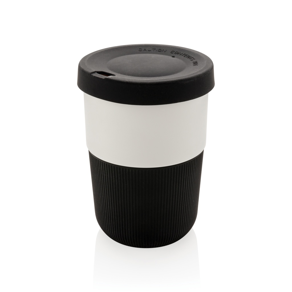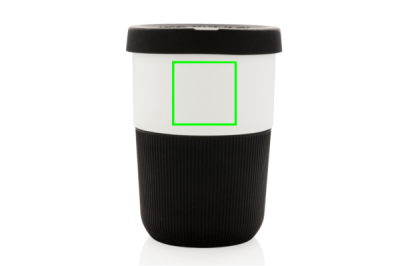 A sustainable alternative to traditional cups! Bringing style and practicality to your morning commute, this PLA coffee cup is ideal for transporting your favourite hot beverage. Manufactured from plant material (PLA), so not only stylish but also kind for the planet. Comes with a silicone grip and lid for your convenience. 100% melamine free. Capacity 380ml.