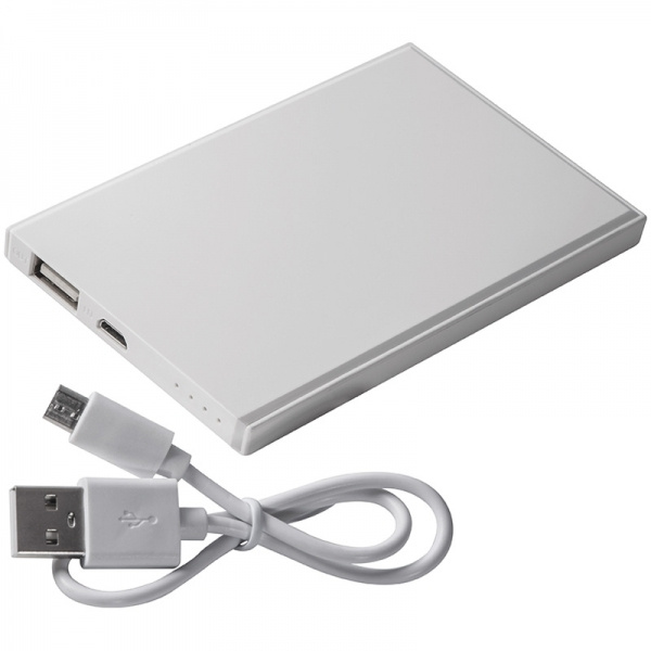 Powerbank with a capacity of 2,200 mAH and charge indicator, incl. USB charging cable. So your smartphone can be charged on the go. We print your logo in UV printing (CMYK) directly on the powerbank.