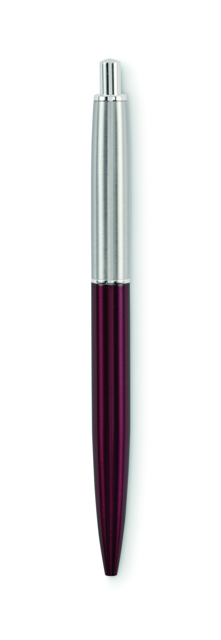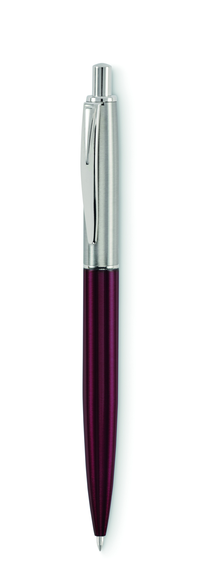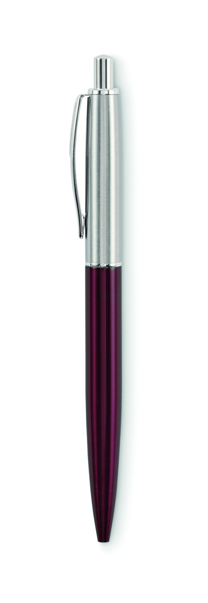 Push button ball pen in recycled stainless steel barrel. Blue ink. Presented in gift box.
