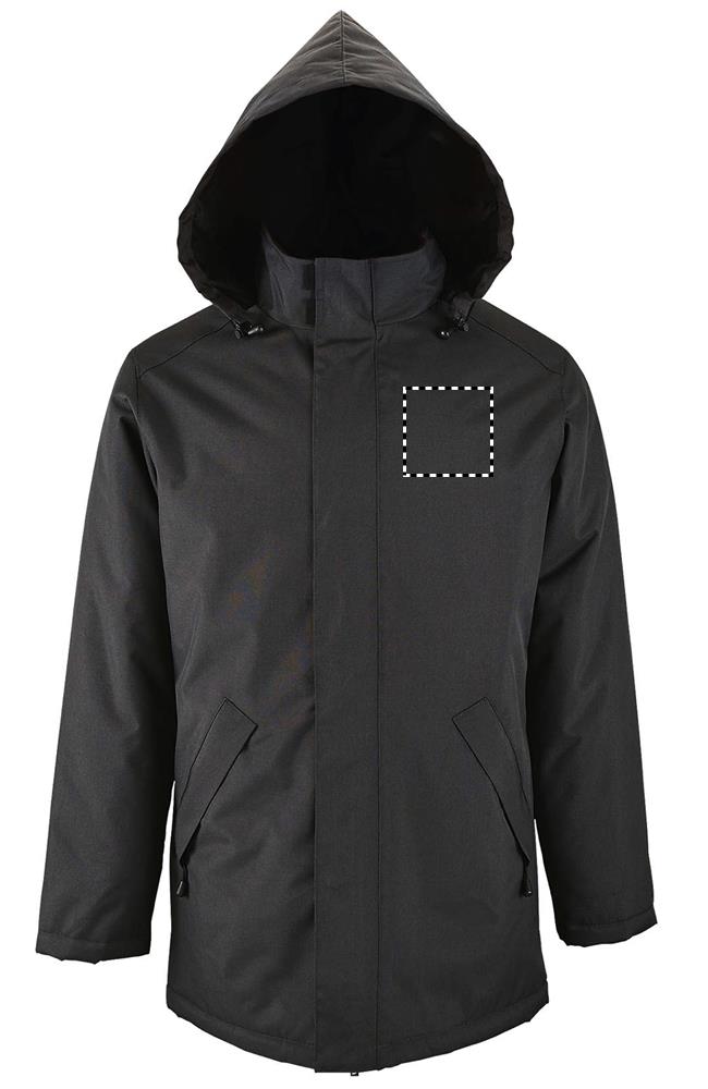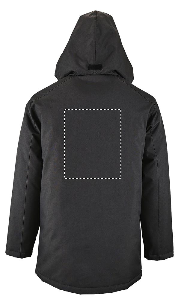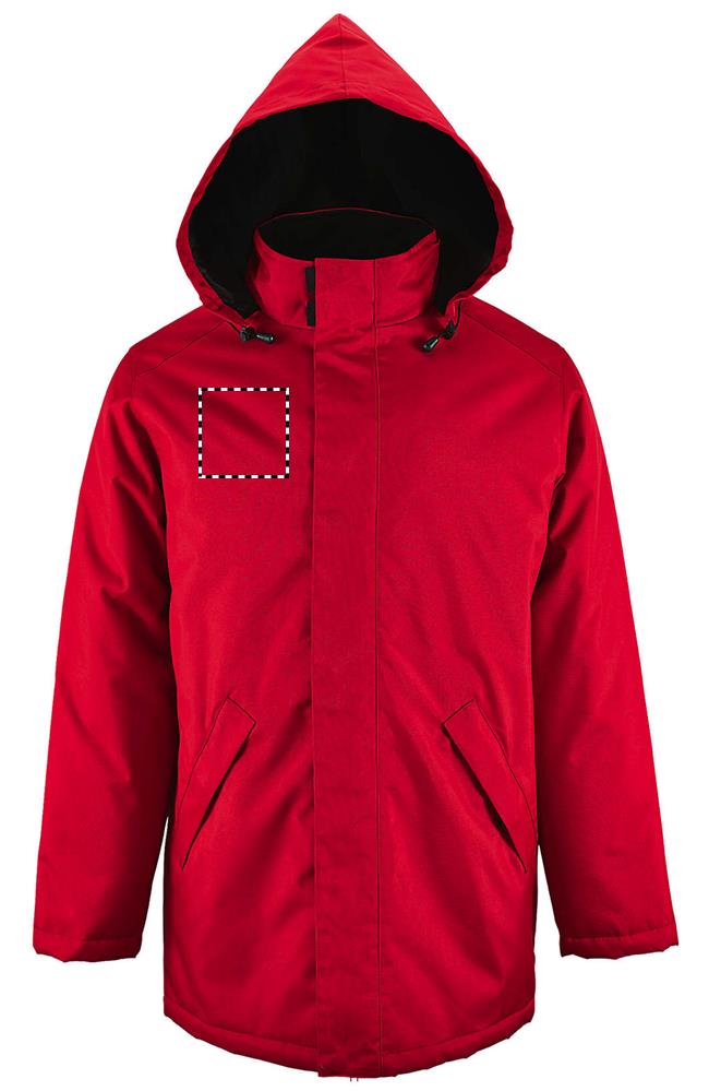 SOL'S ROBYN, unisex jacket with padded lining, 100% polyester - pvc coating, lining <(>&<)> padding : 100% polyester oxford 300d, zip opening with double slider and placket with self-gripping straps and hidden press studs, hood inside collar, fleece-lined inside collar, 2 outside zip pockets with flaps, 1 inside pocket, cuff fasteners. About sizes matching, please refer to the size chart in the product documentation section.