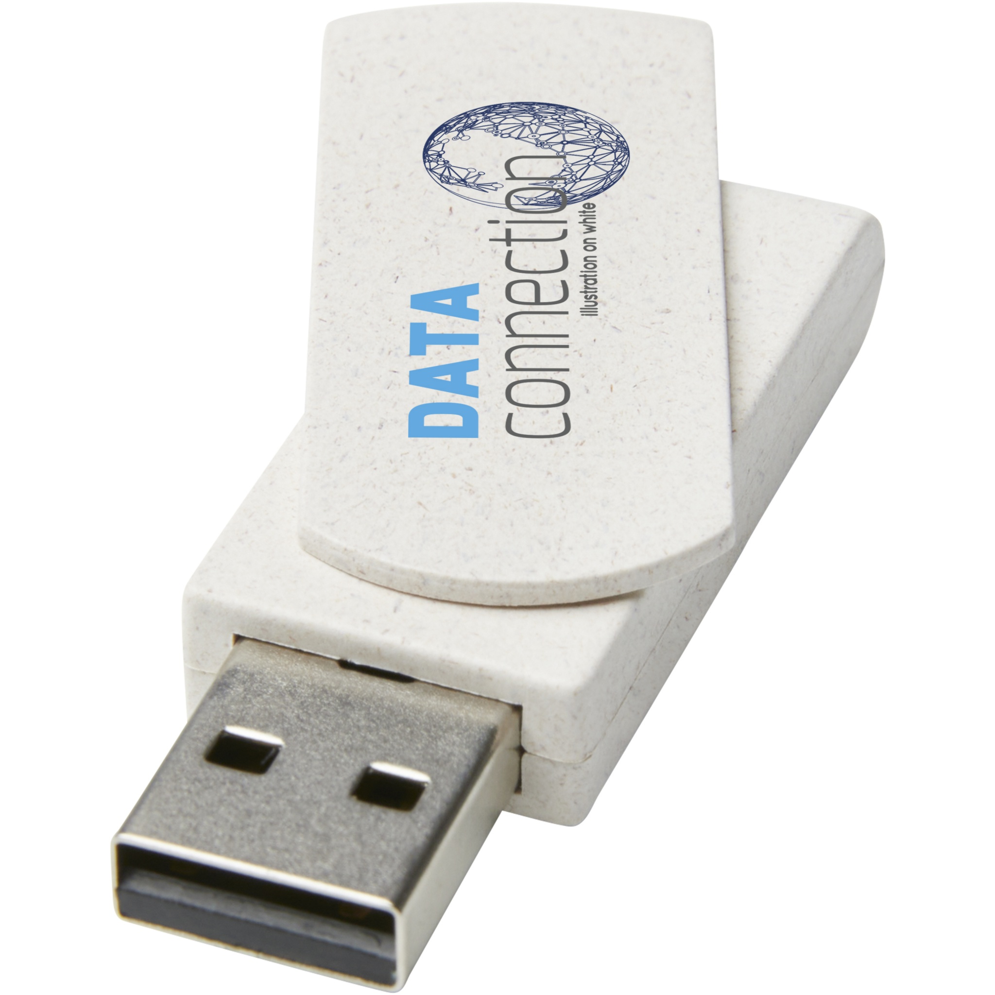 Rotate 4GB wheat straw USB flash drive that allows you to transfer data to a compatible PC or MacBook. The housing is made of 50% wheat straw and 50% ABS plastic. USB version is 2.0 with a write speed of 2 MB/s andread speed of 5 MB/s.