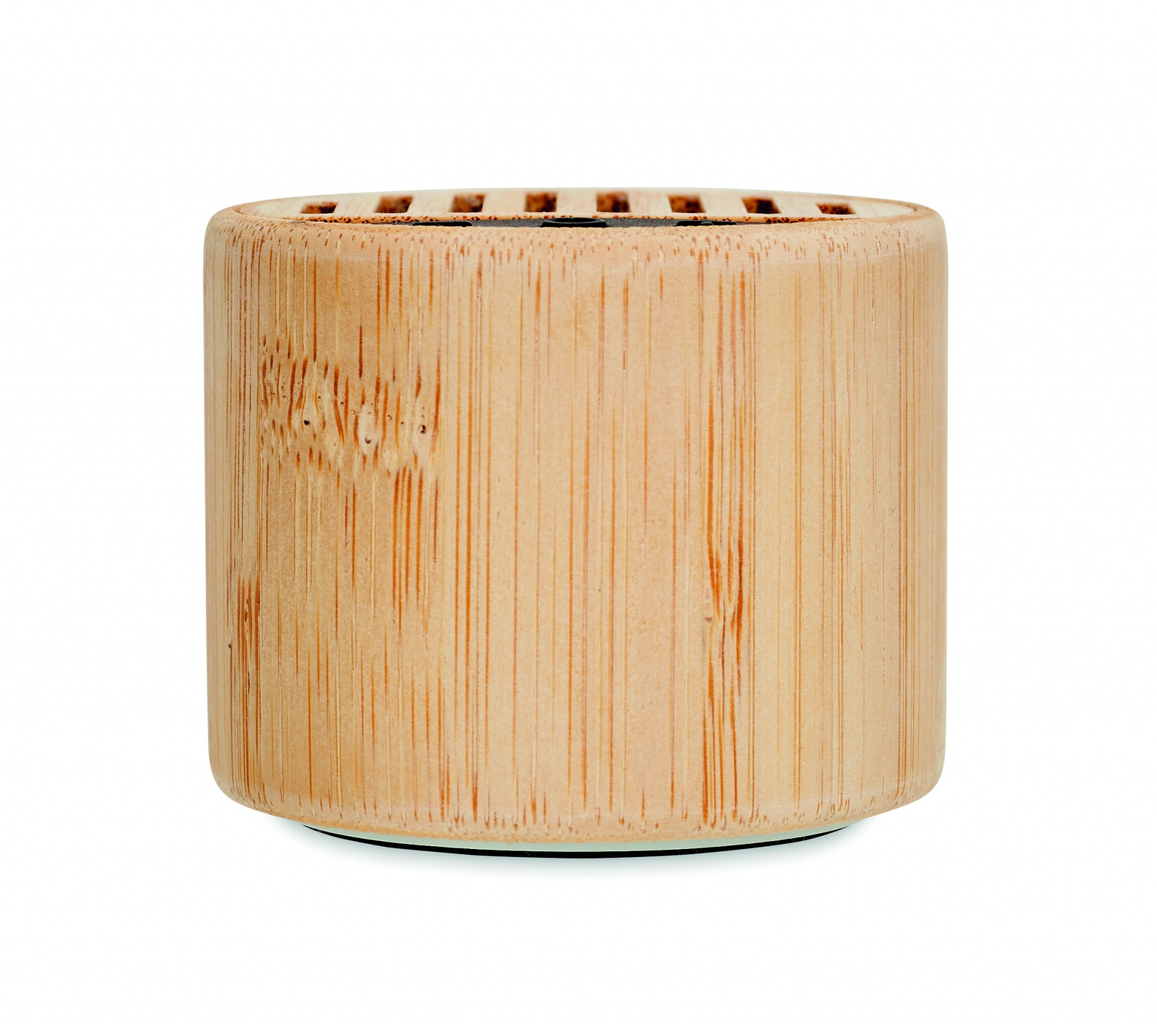 5.3 wireless speaker in ABS with bamboo casing and LED light indication. 1 Rechargeable Lithium 300 mAh battery included. Output data: 3W, 4 Ohm and 5V. Playing time approx.. 4h. Bamboo is a natural product, there may be slight variations in colour and size per item, which can affect the final decoration outcome.