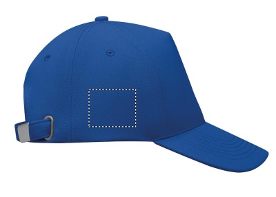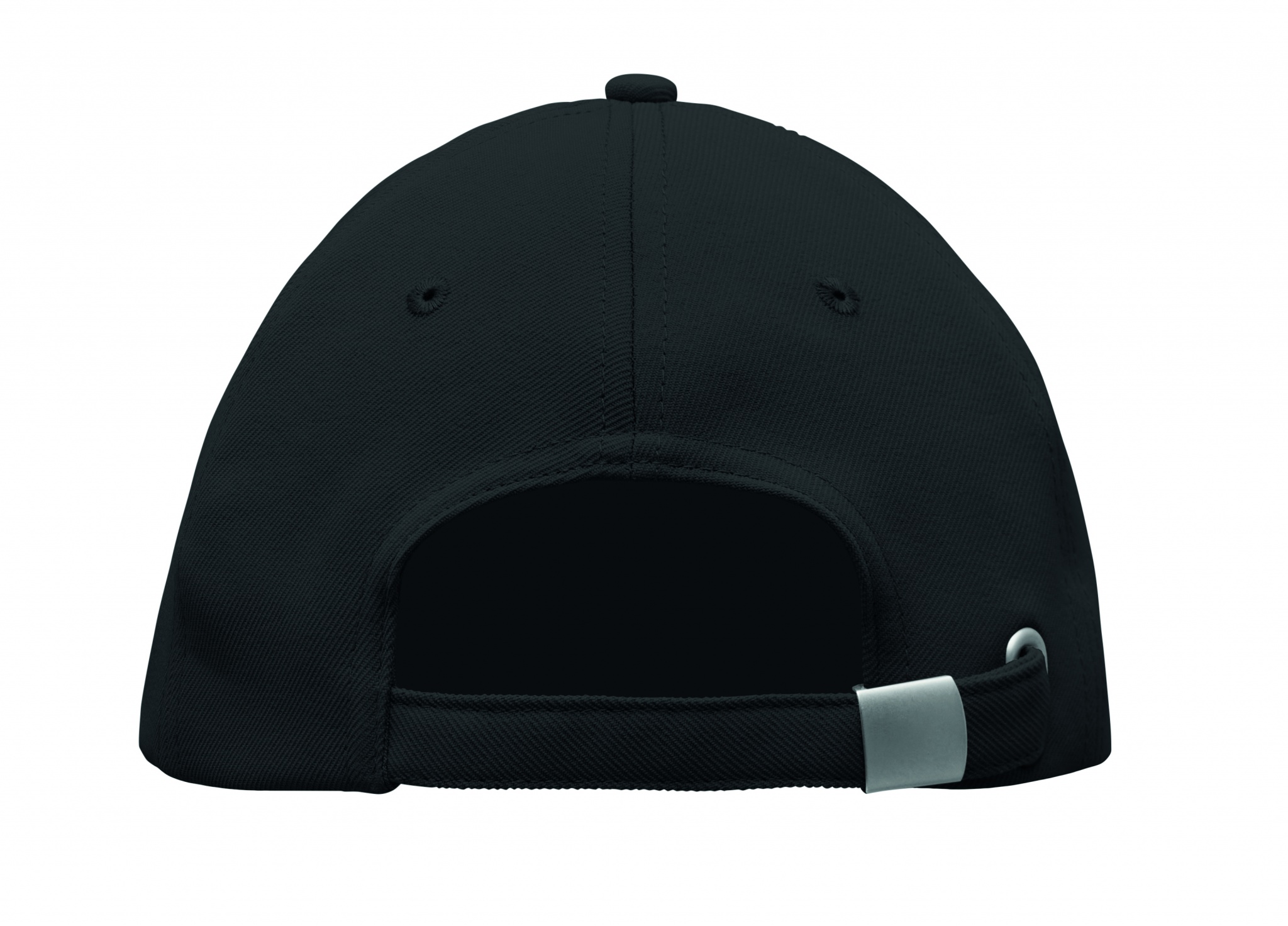 RPET 5 panel baseball cap in polyester 210 gm/m2 with silver steel buckle. 4 embroidered eyelets in matching colour. Size 7 1/4.