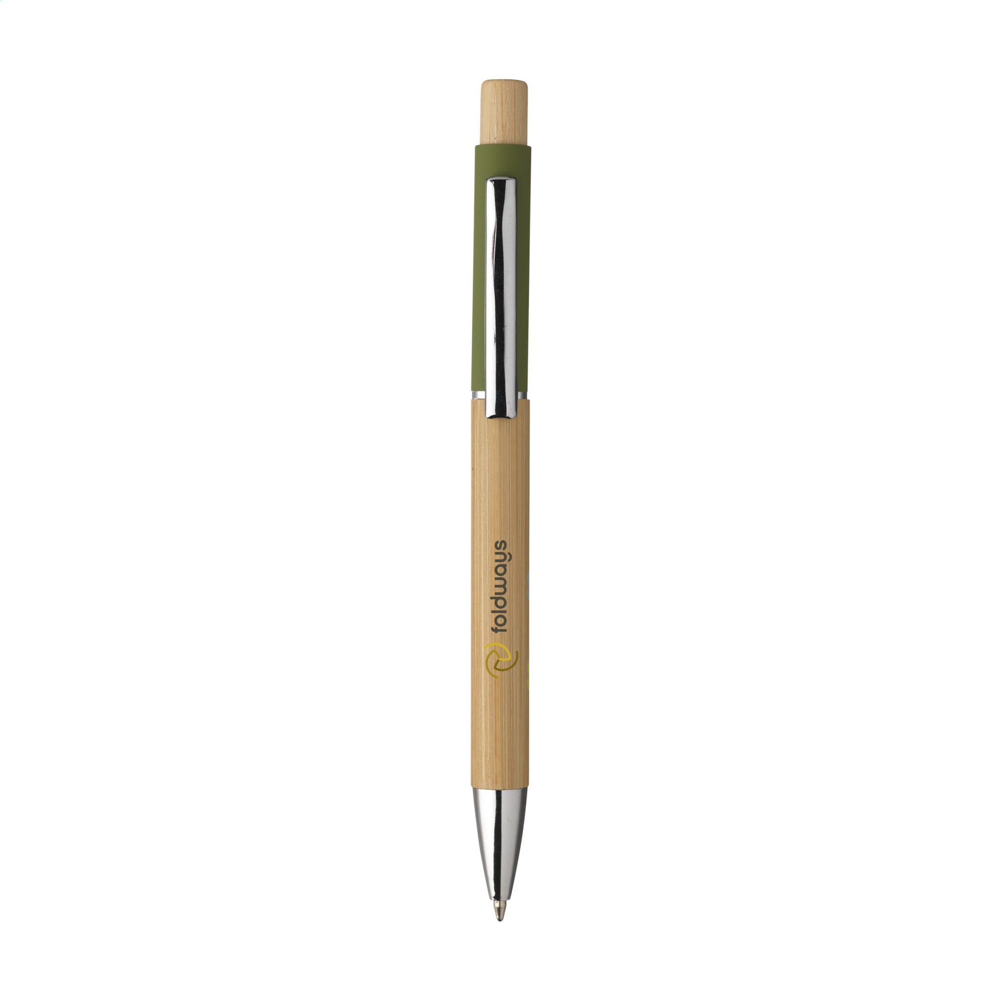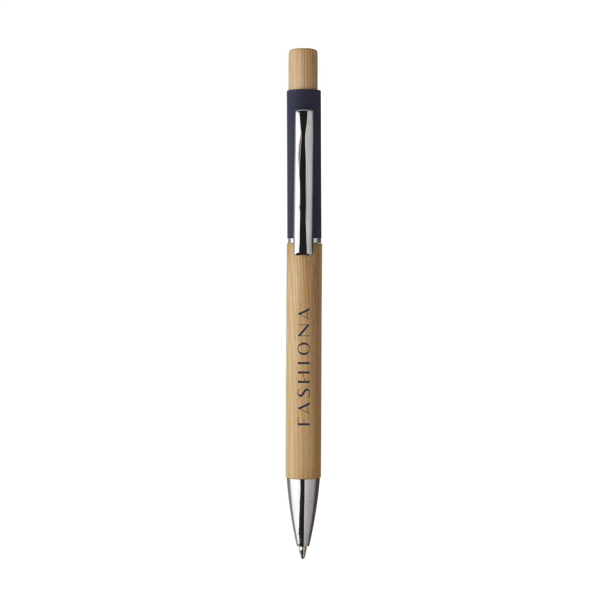 WoW! Blue ink ballpoint pen with barrel and push button made from FSC 100% certified bamboo. Metal clip. The top of the barrel is covered with an attractive rubberised coating.