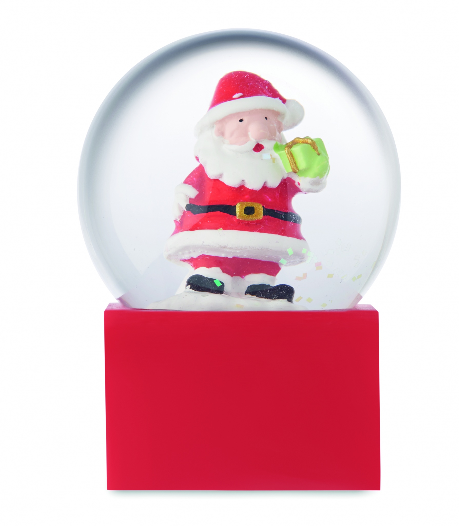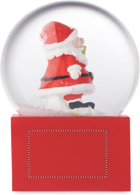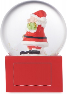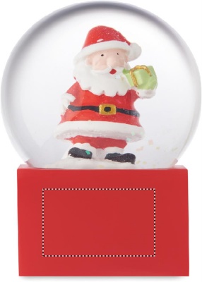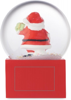 Small Christmas glass snow ball ornament with polyresin base.