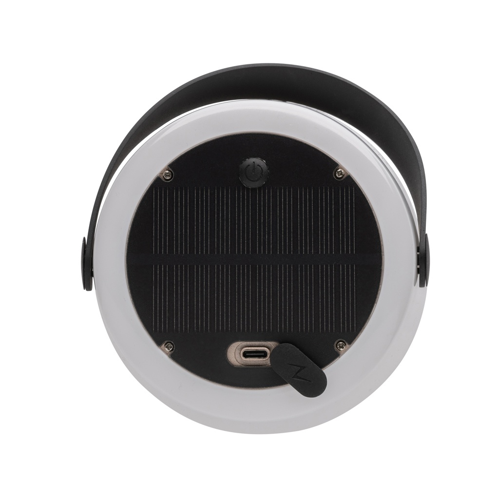 LED solar table light made with RCS certified recycled ABS. Total recycled content: 71% based on total item weight. RCS certification ensures a completely certified supply chain of the recycled materials. The torch uses a re-chargeable A-grade 1200 mah lithium battery so no need to replace the batteries. Simply re-charge via your USB socket and the integrated type C port. Including 80cm charging cable. Charging time by cable: 3 hours. 10 hours in bright sunlight will provide up to 3-4 hours of working time. Working time when fully charged: 20 hours. IPX 4 waterproof.