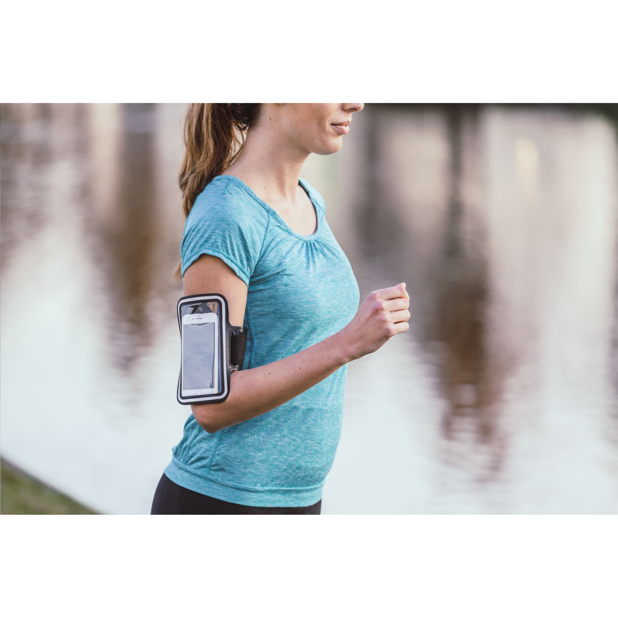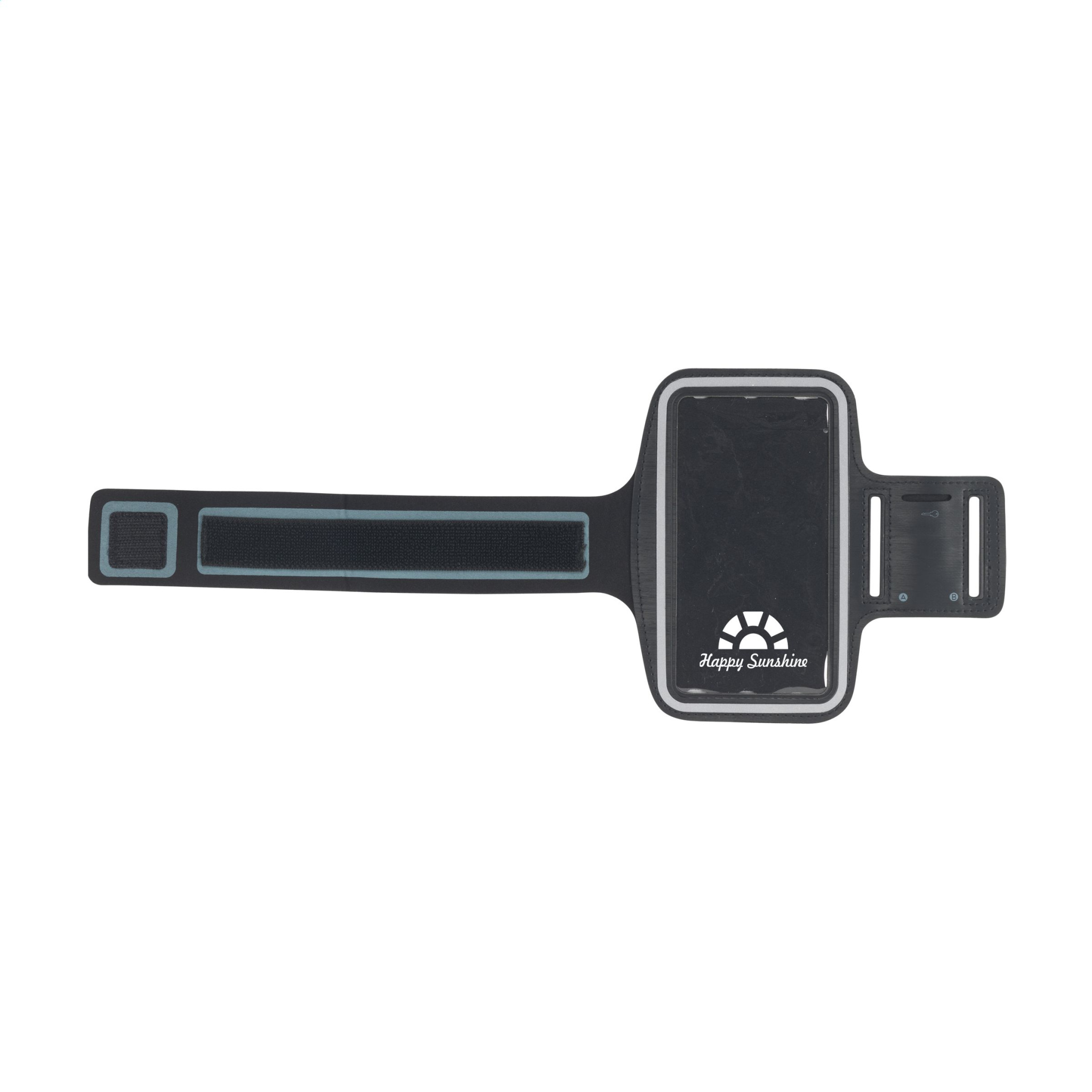 Adjustable sports bracelet made from elastic, flexible and wear-resistant material. With velcro fastening, special key pouch and transparent telephone cover with a fluorescent frame so you’re more visible in the dark. Dims. frame 7,5 x 14,5 cm.