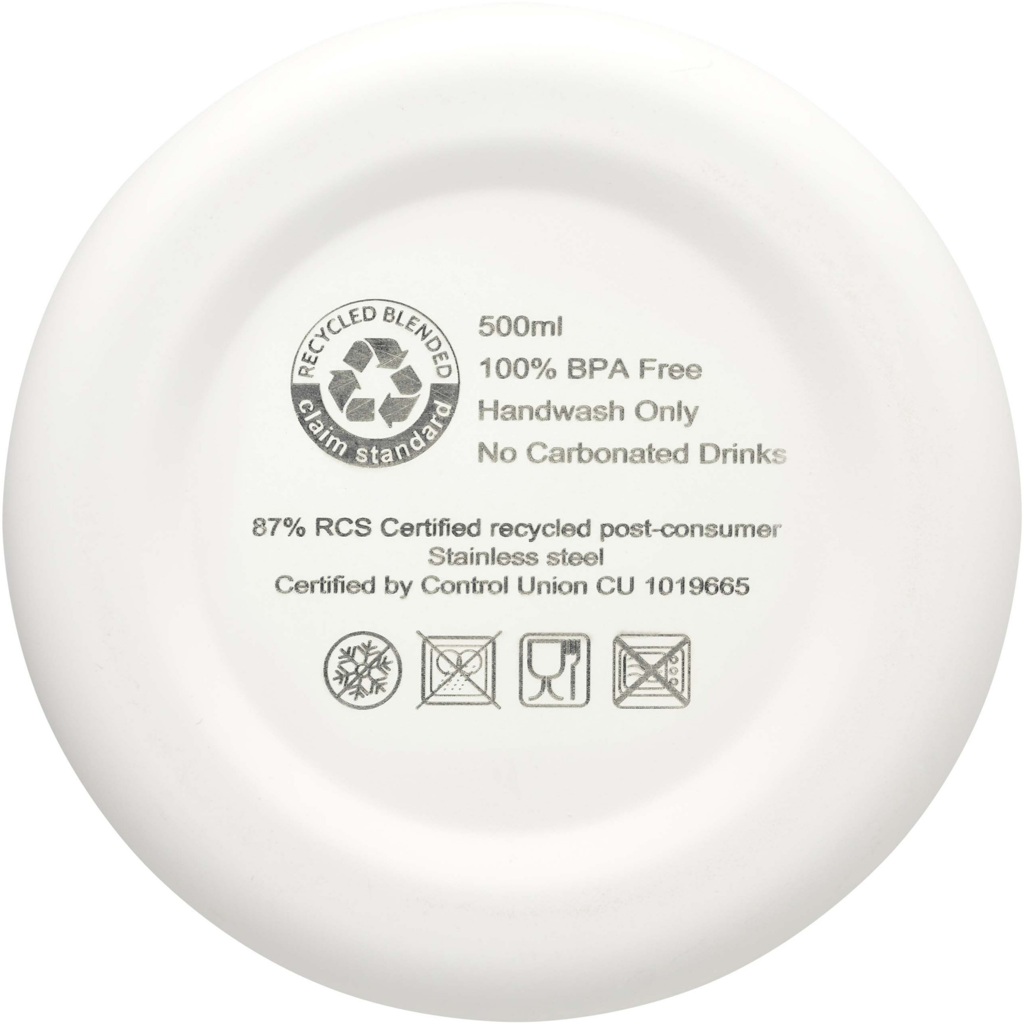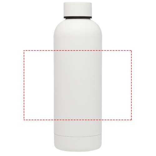 Copper vacuum insulated RCS certified stainless steel bottle with clean design. The insulated stainless steel construction prevents condensation on the inside of the bottle, and the on-trend matte powder-spray finish makes it extra durable. BPA-free, tested and approved under German Food Safe Legislation (LFGB). Tested and approved for phthalates content according to REACH regulations. Volume capacity is 500 ml. Hand wash recommended. Presented in a recycled cardboard gift box.